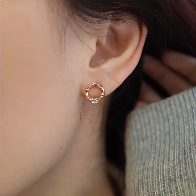 軽やかな上品さを耳元に。モビウスモチーフのミニアクセサリー 永遠を意味するモビウスリングに、きらめくキュービックジルコニアを添えた小ぶりデザイン。 イヤリング(ピアス穴なし)/ピアス(ポスト部分S925) の2タイプから選べます。 【ポイント】 ✅ ピアス穴なしOK(イヤリングタイプ) 柔らかいシリコンカバー付きで、耳たぶにやさしくフィット。長時間でも痛くなりにくい設計です。 ✅ ピアスタイプはポスト部分S925 肌に触れるポスト部分にシルバー925を使用。敏感肌の方にも配慮しました。 ※すべての方にアレルギー反応が出ないわけではありません。 ✅ 小ぶり×軽量で毎日使える 約10.5×9.5mmのミニサイズ。さりげない輝きで、通勤〜お出かけまで合わせやすい。 ✅ ギフトにもおすすめ シンプルで上品な印象なので、ご褒美にもプレゼントにも◎ 【商品仕様】 品名:モビウスデザイン イヤリング/ピアス カラー:ローズゴールド 素材: ・イヤリング(ピアス穴なし):銅(Kゴールドメッキ)/キュービックジルコニア/シリコンカバー ・ピアス:ポスト部分S925/銅(Kゴールドメッキ)/キュービックジルコニア サイズ:約10.5mm×9.5mm 重量:約1.1g(片耳)
