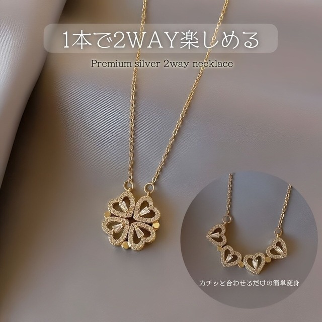 【2WAY】S925 シルバー ハート&クローバー ネックレス|シンプル 上品