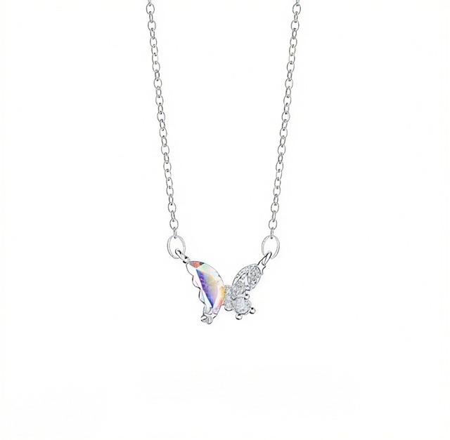 エレガントなスターリングシルバー925銀バタフライネックレス
