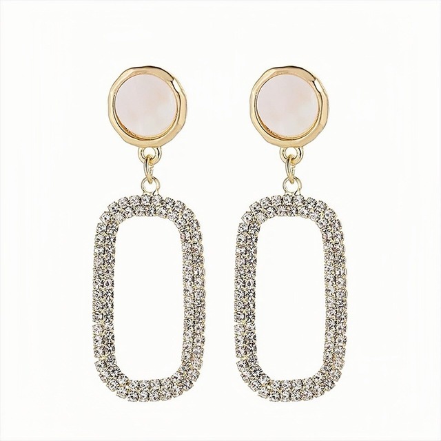 【925銀針・金属アレルギー対応】 ホワイトシェル × クリスタル ゴールドメッキ オーバルスイングピアス