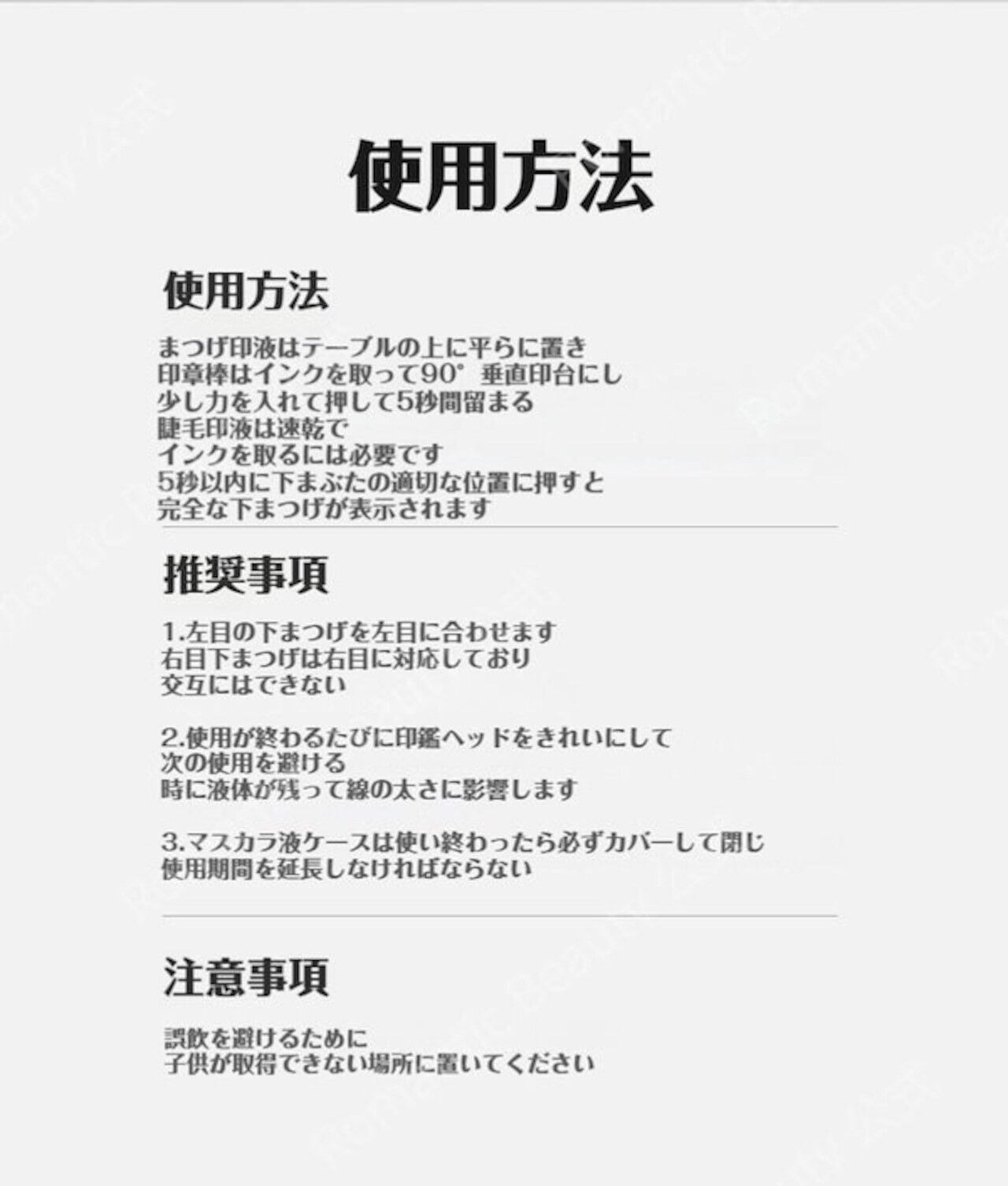 【ご使用方法】スタンプを目の下に軽く押し付けるだけで、簡単に魅力的な下まつげを作り出せます。お好きなアイカラーやマスカラと合わせて使用することで、さらに華やかな印象を与えます。また、持ち運びに便利なサイズなので、旅行や外出時にも重宝します。