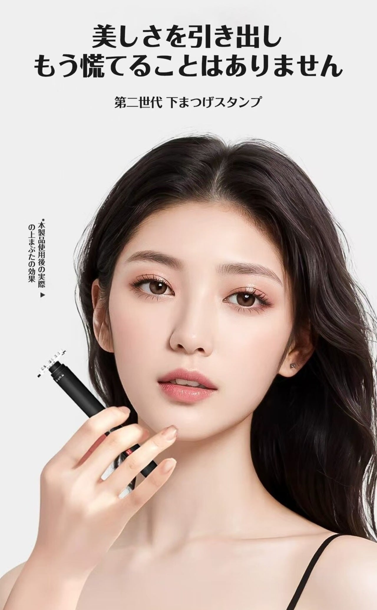 この下まつげスタンプは、手先の不器用な方でも簡単に美しい下まつげを演出できる理想的なアイテムです。特別なデザインと使いやすさが特徴で、メイクの時間を短縮し、毎日のメイクアップをより楽しむサポートをします。にじみ防止機能が搭載されており、長時間の使用でも安心してご利用いただけます!