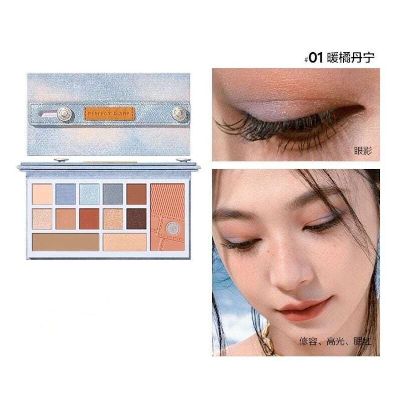 PERFECT DIARY 【透けピュアメイク】マルチパレット アイシャドウ チーク ハイライト シェーディング 高発色 メイクアップ デニムシリーズ プレゼント