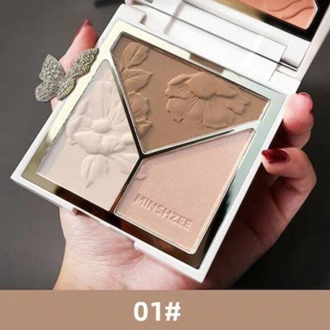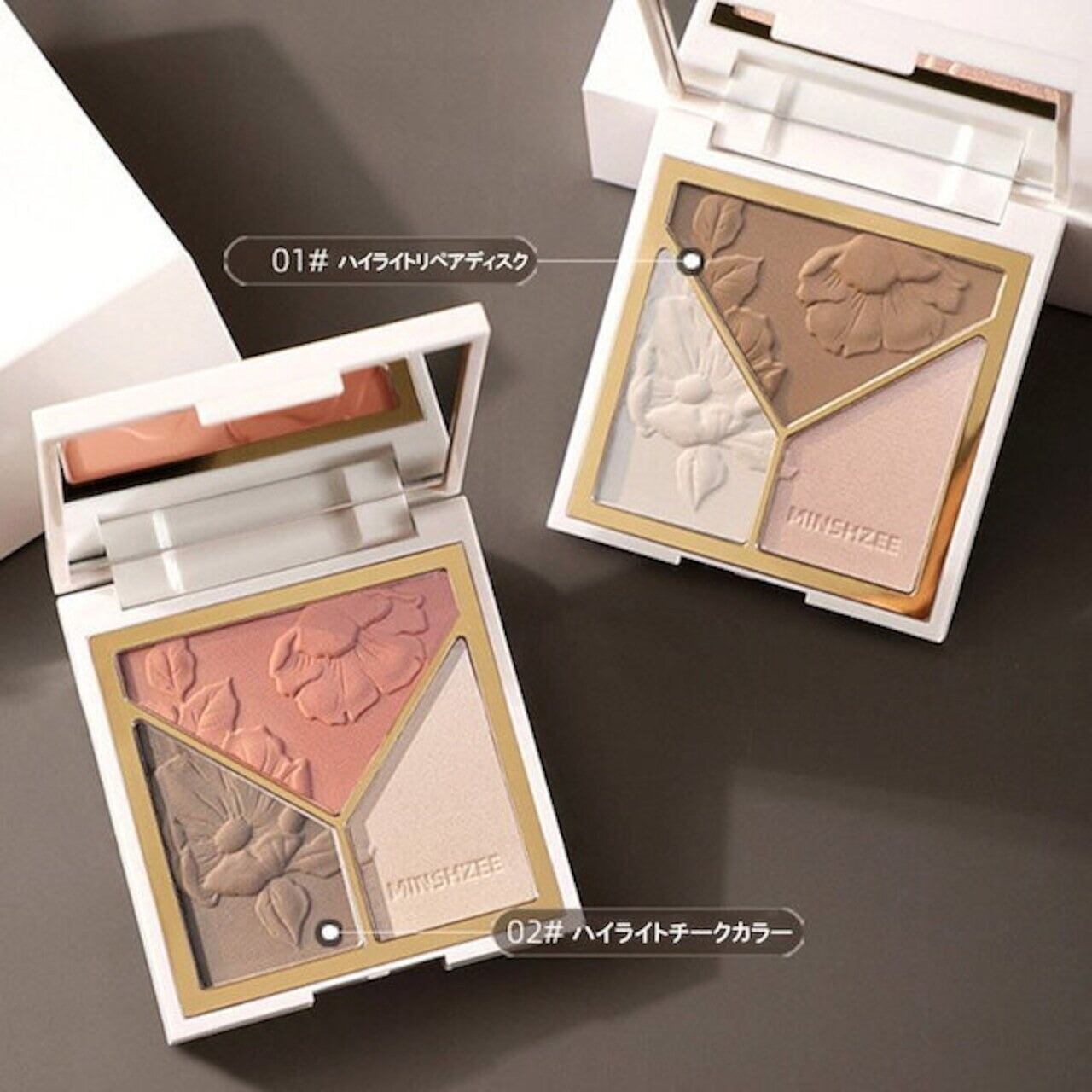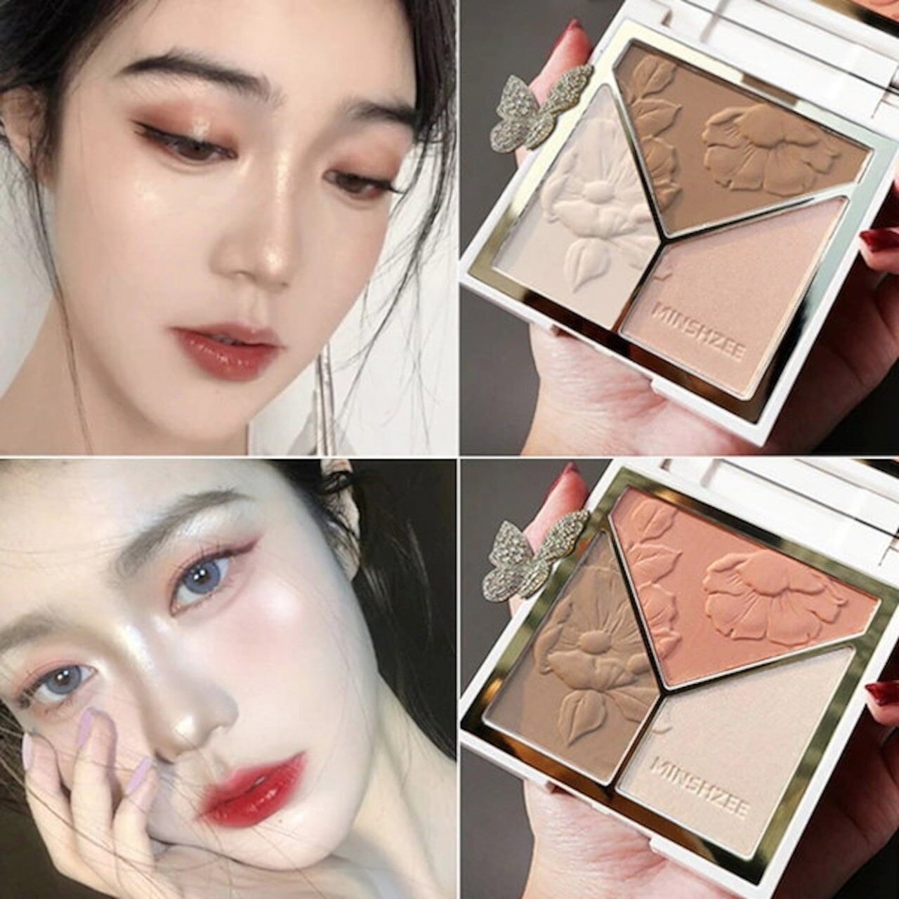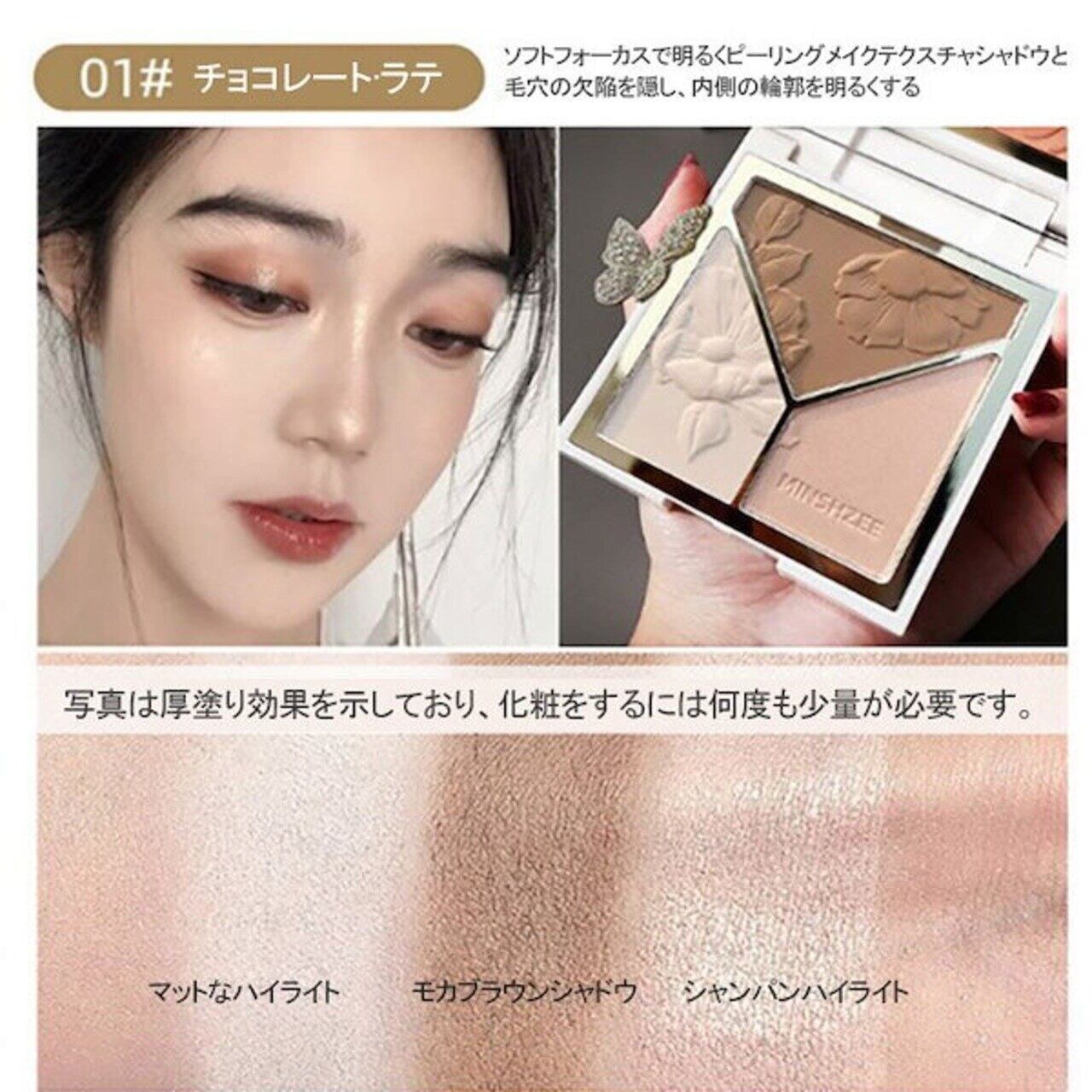 Minshzeeハイライター、3 in 1輪郭パレット,ブロンザ一,きらめき,光沢パウダ一,イルミネ一夕一
