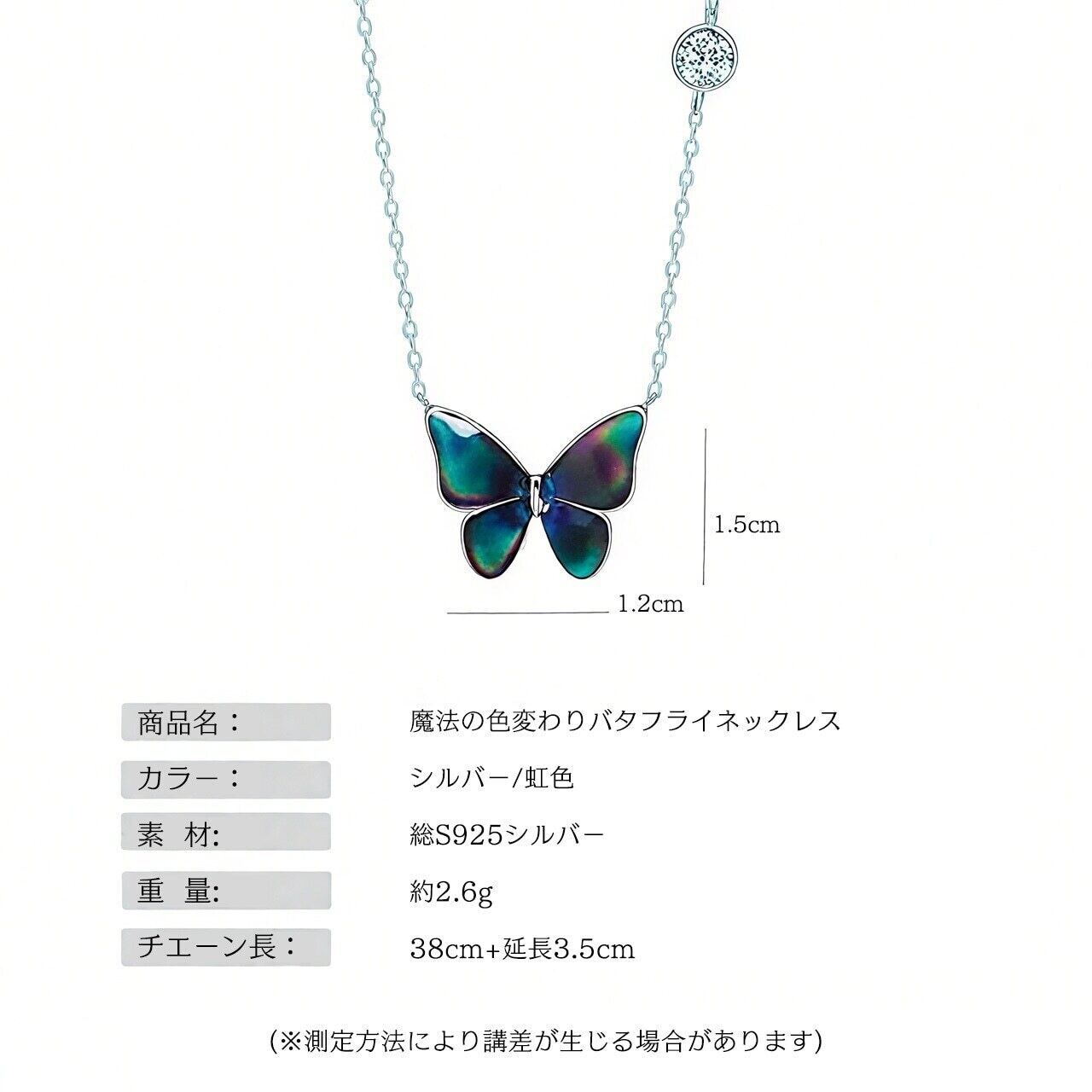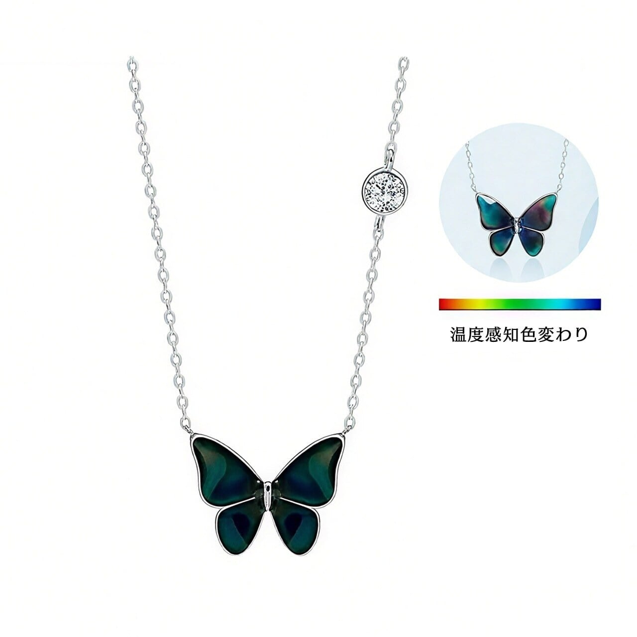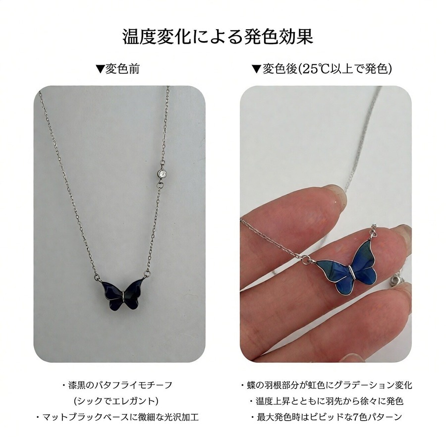 体温で色が変わる魔法の蝶 バタフライネックレス 総925シルバー製 アレルギー対策済み