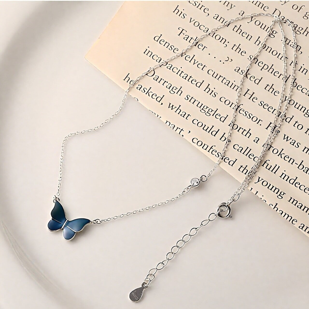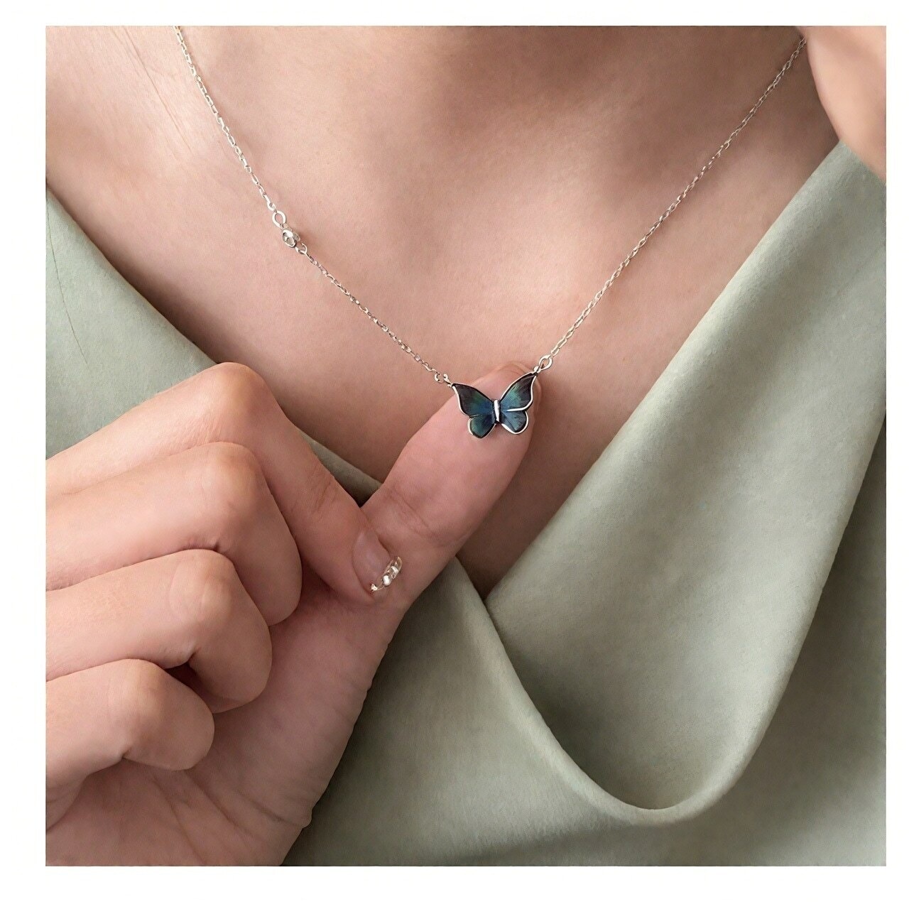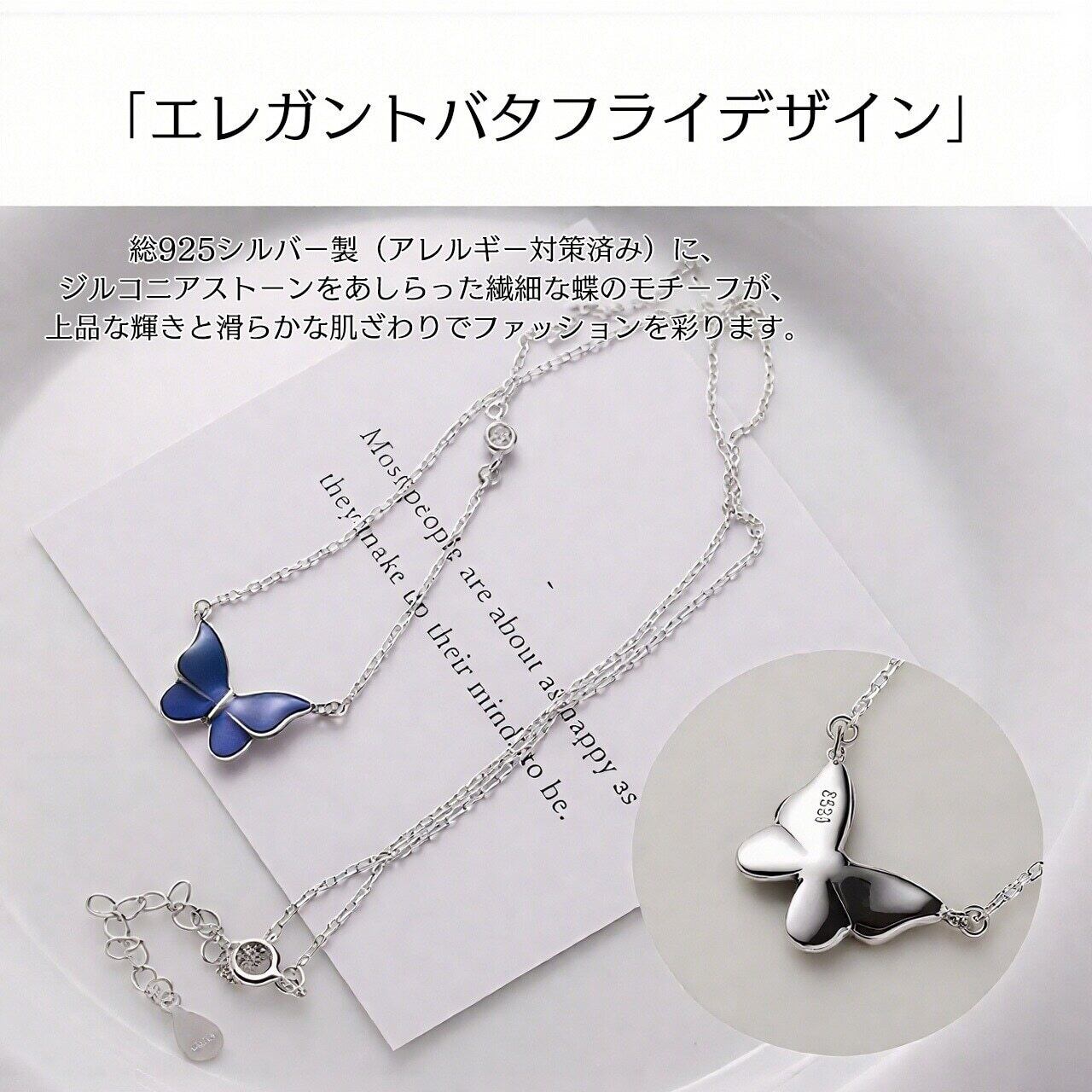 体温で色が変わる魔法の蝶 バタフライネックレス 総925シルバー製 アレルギー対策済み