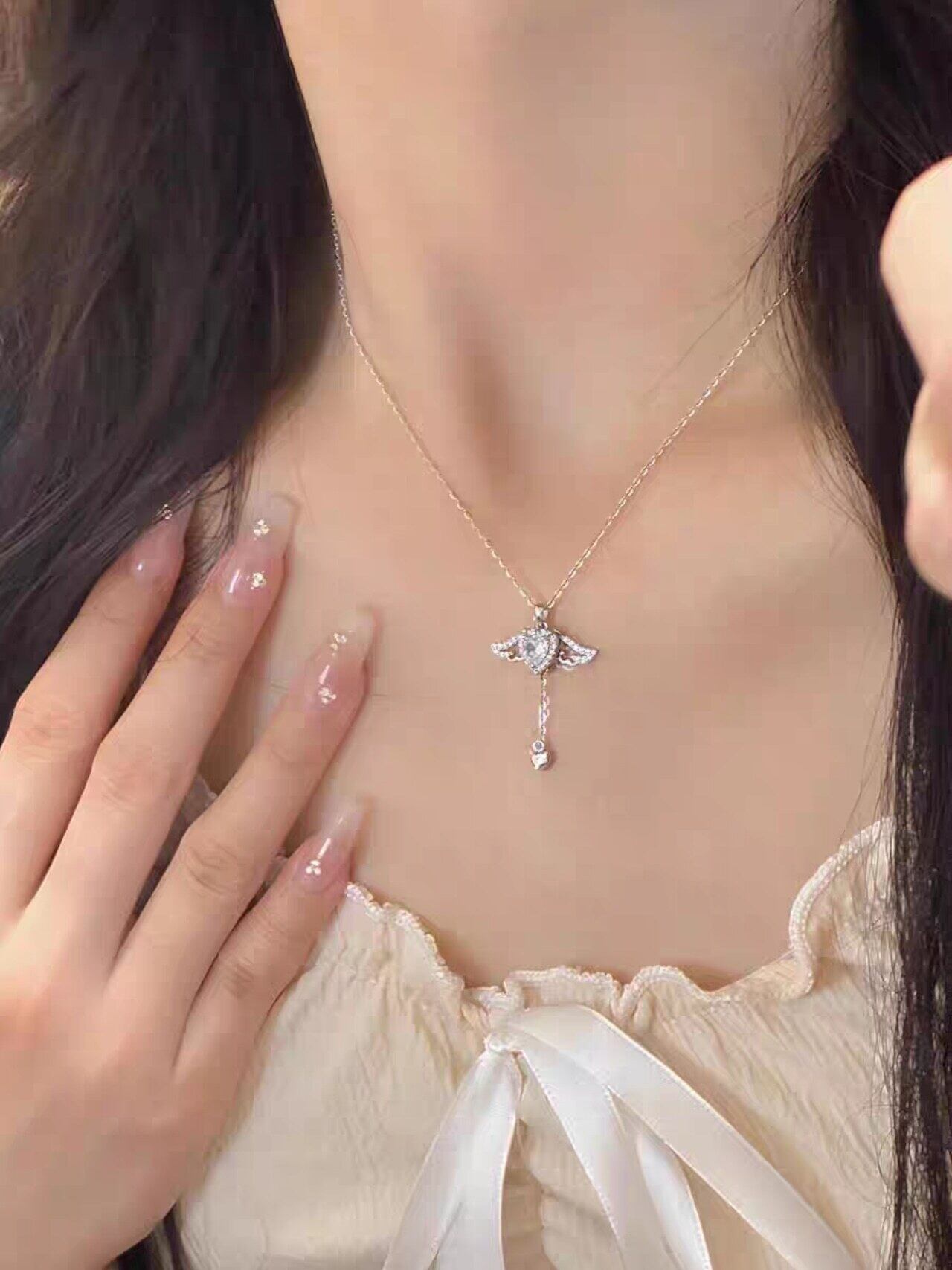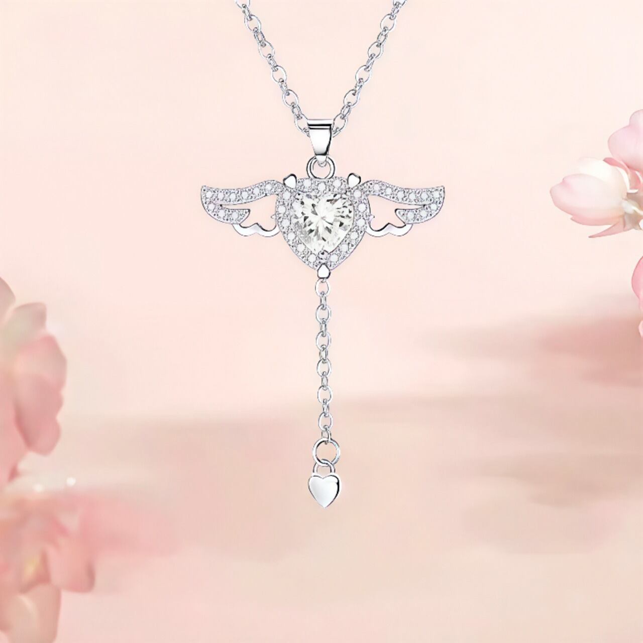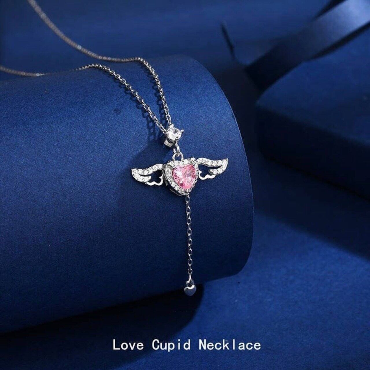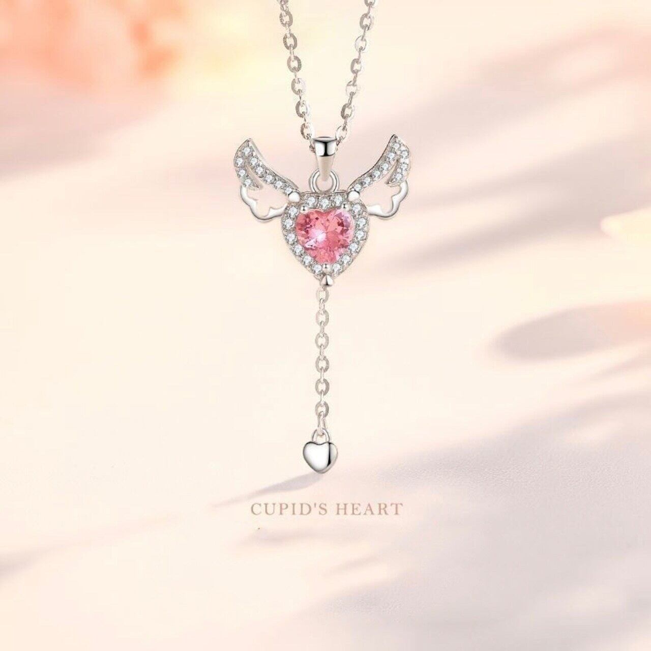 【S925銀】キューピッドハート ネックレス 天使の翼ペンダント
