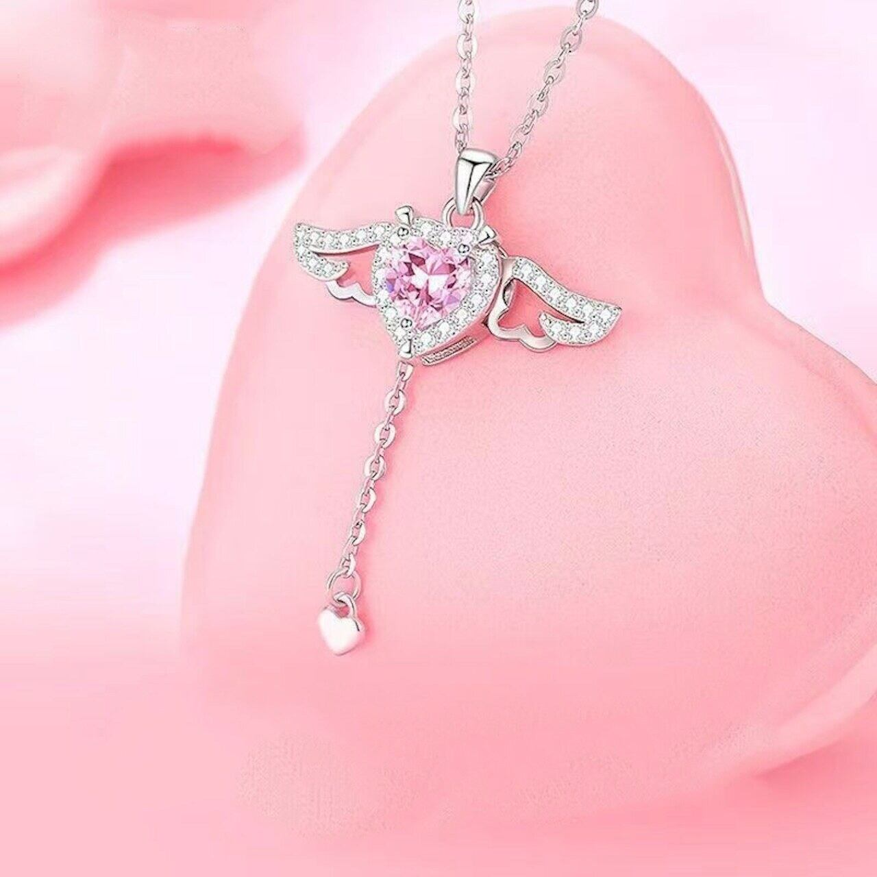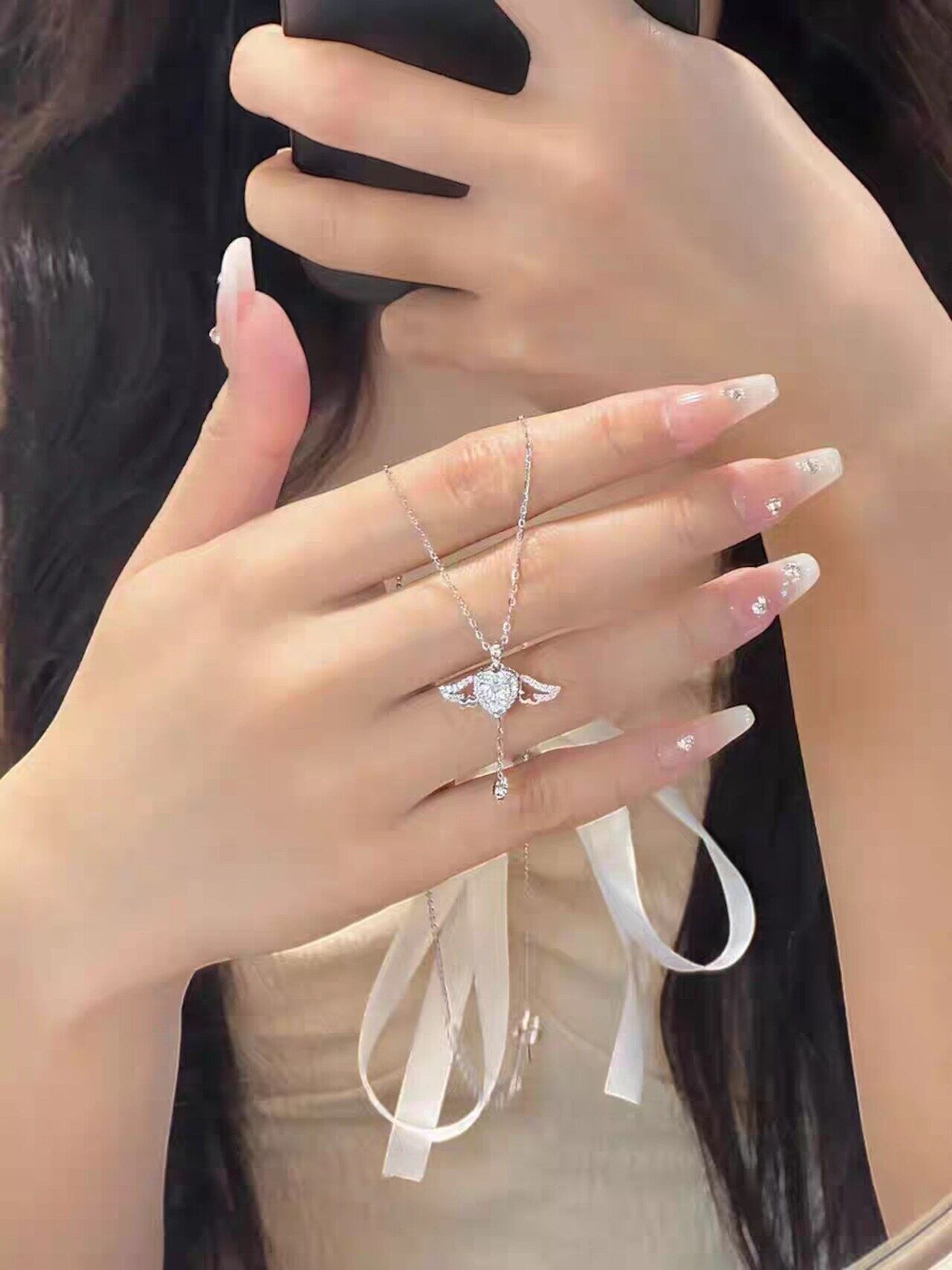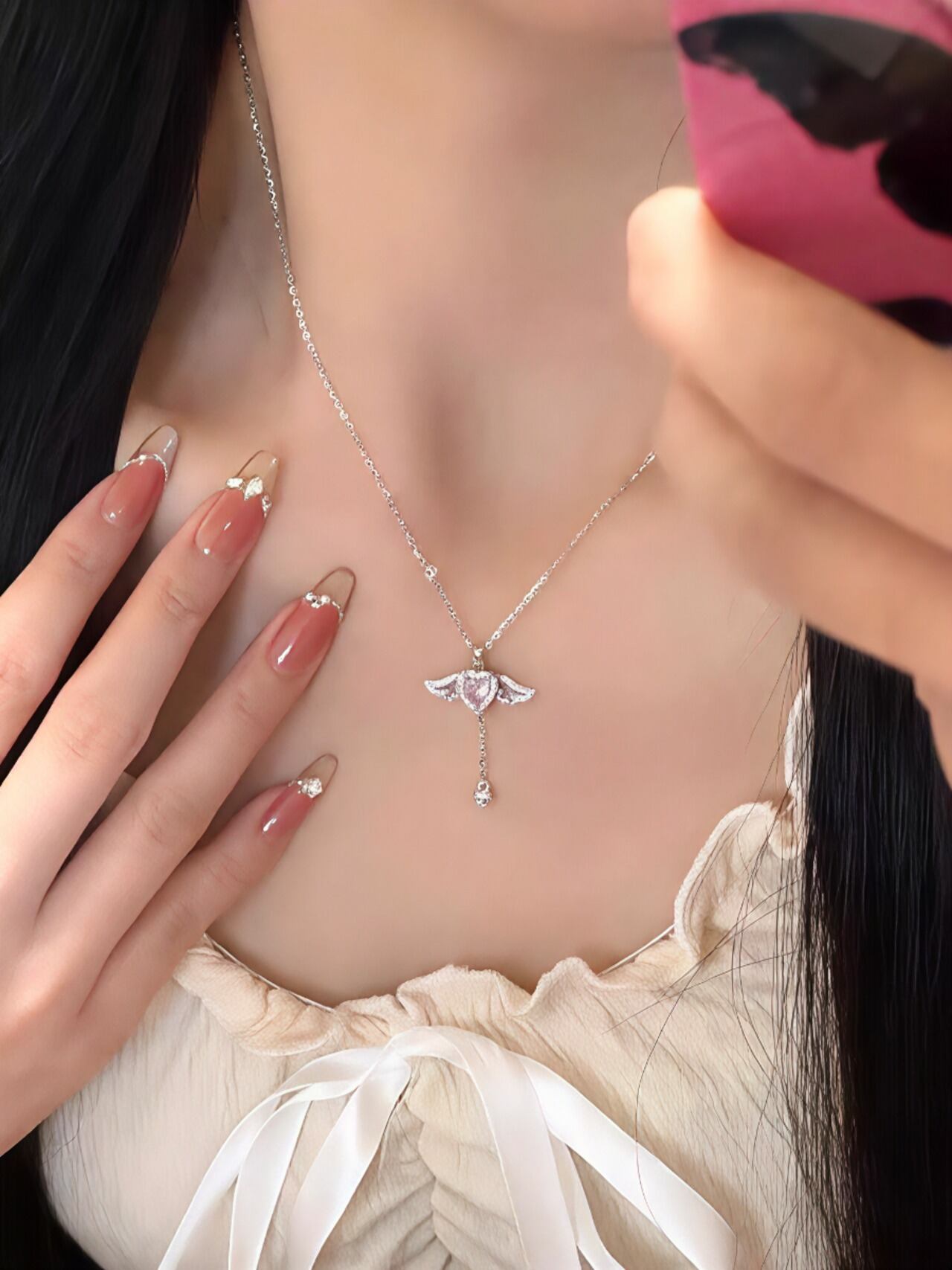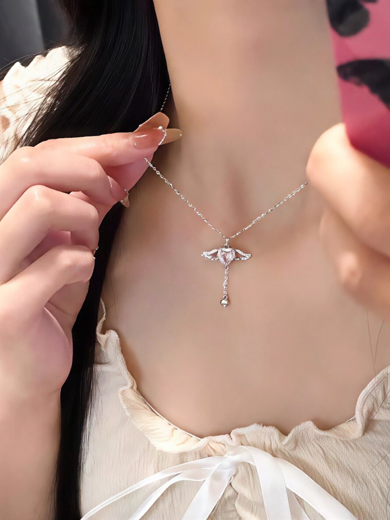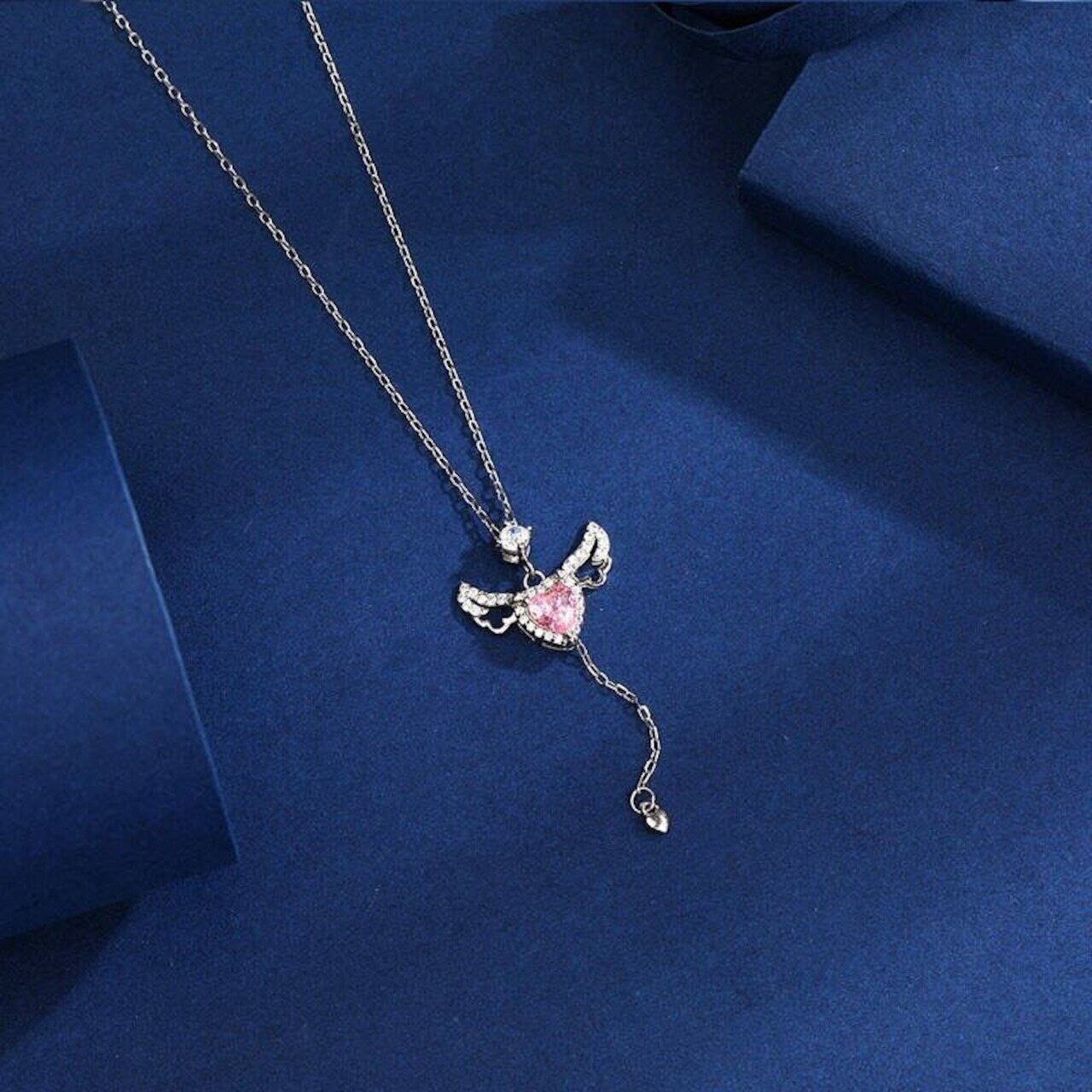 【S925銀】キューピッドハート ネックレス 天使の翼ペンダント