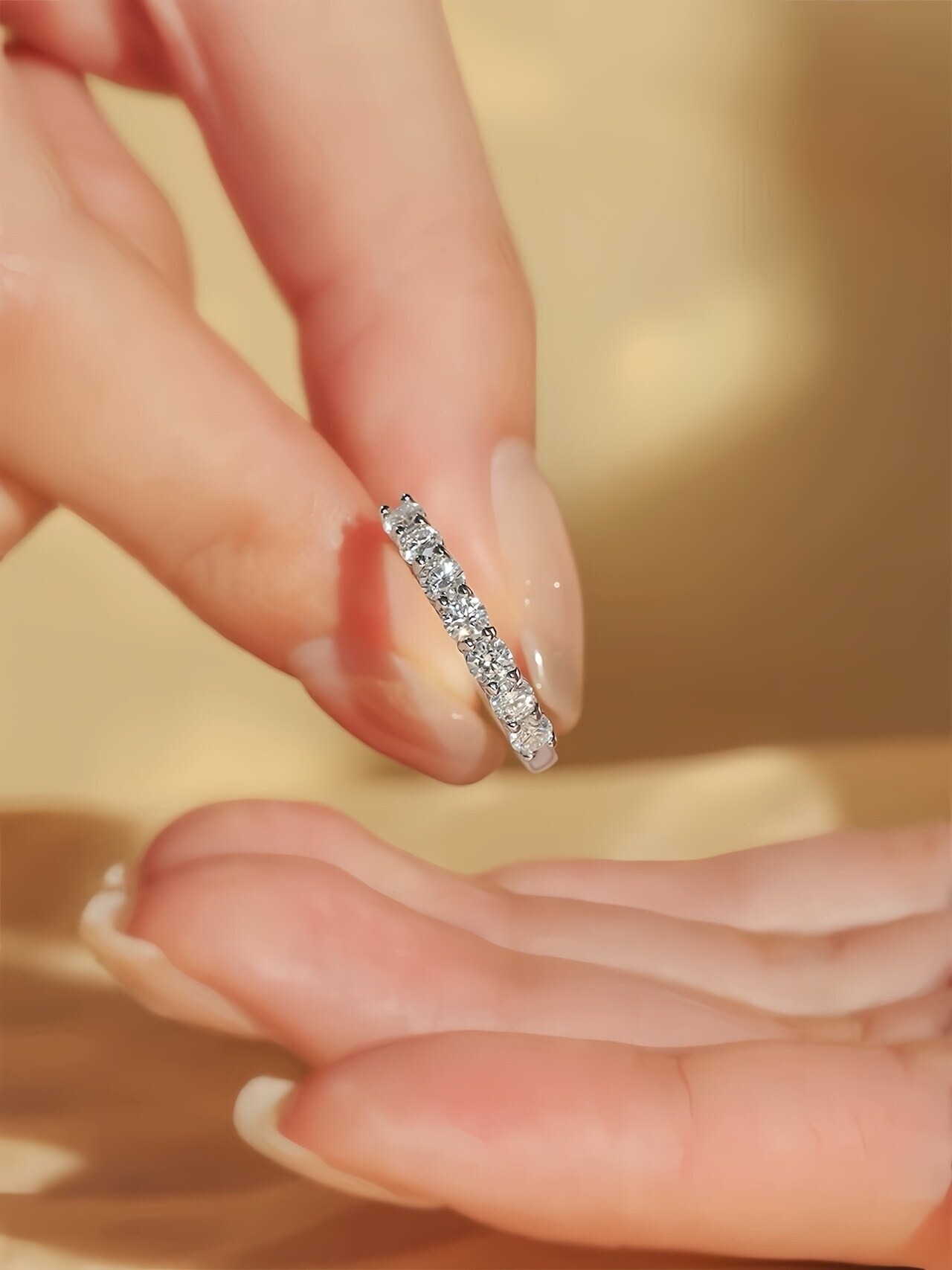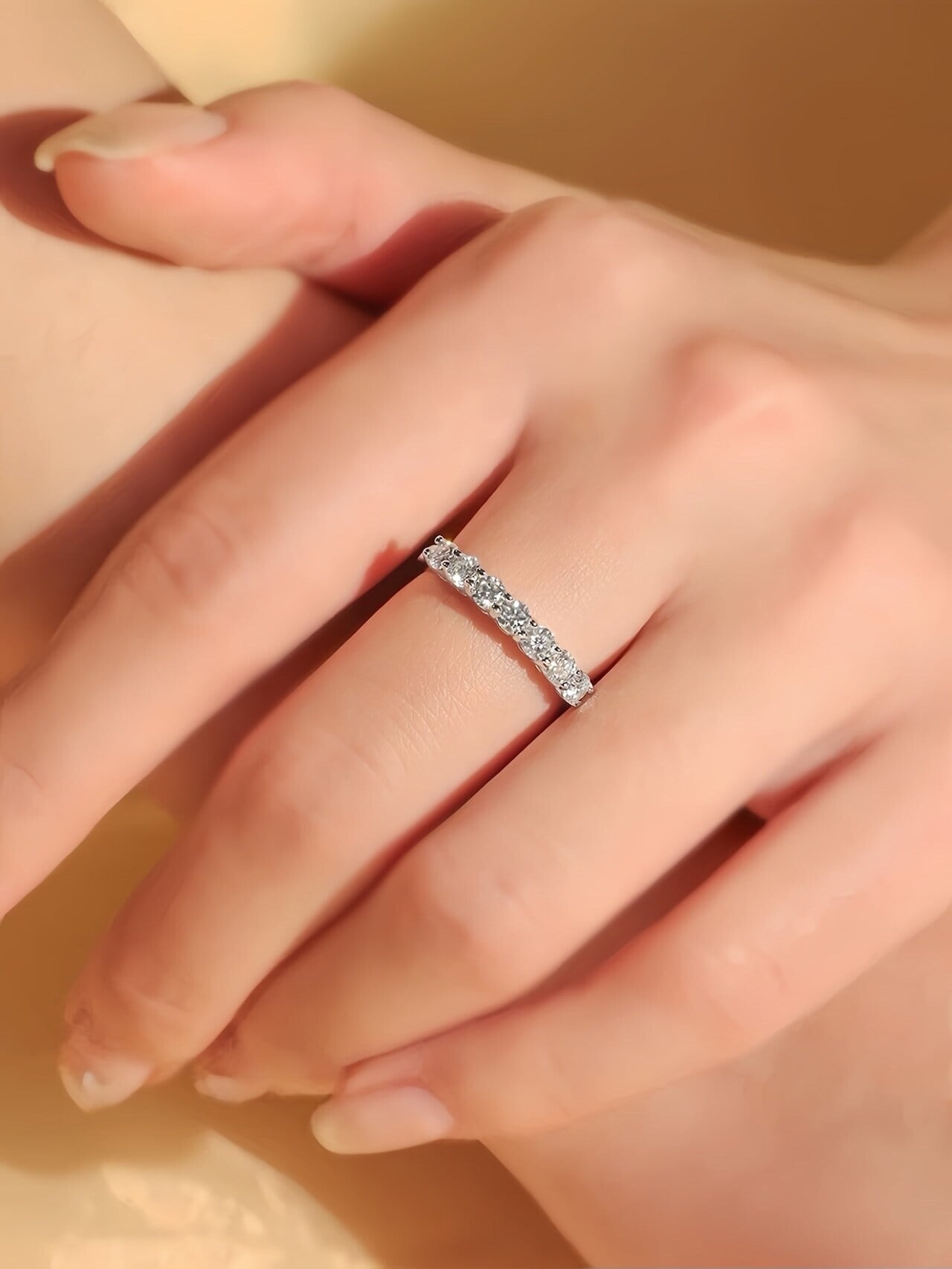 【上品な輝き】ハーフエタニティリング|繊細なカットが指先でキラリ。大人の女性にぴったりな、華やかで洗練されたアクセサリー