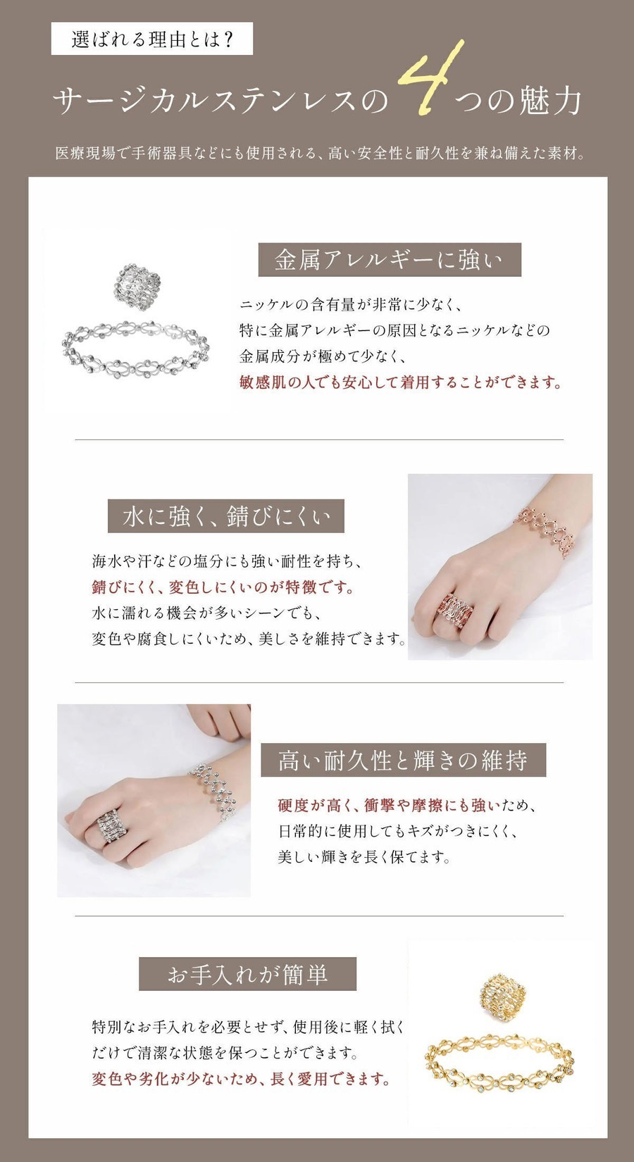 伸縮式リングブレスレット:当社の伸縮式リングブレスレットは、2センチから7センチまでの柔軟なサイズ範囲を備えており、幅広い方に適しています。重量はわずか8gで、快適で負担のない着用体験を提供します。着用ニーズをしっかりと満たすことができます。
