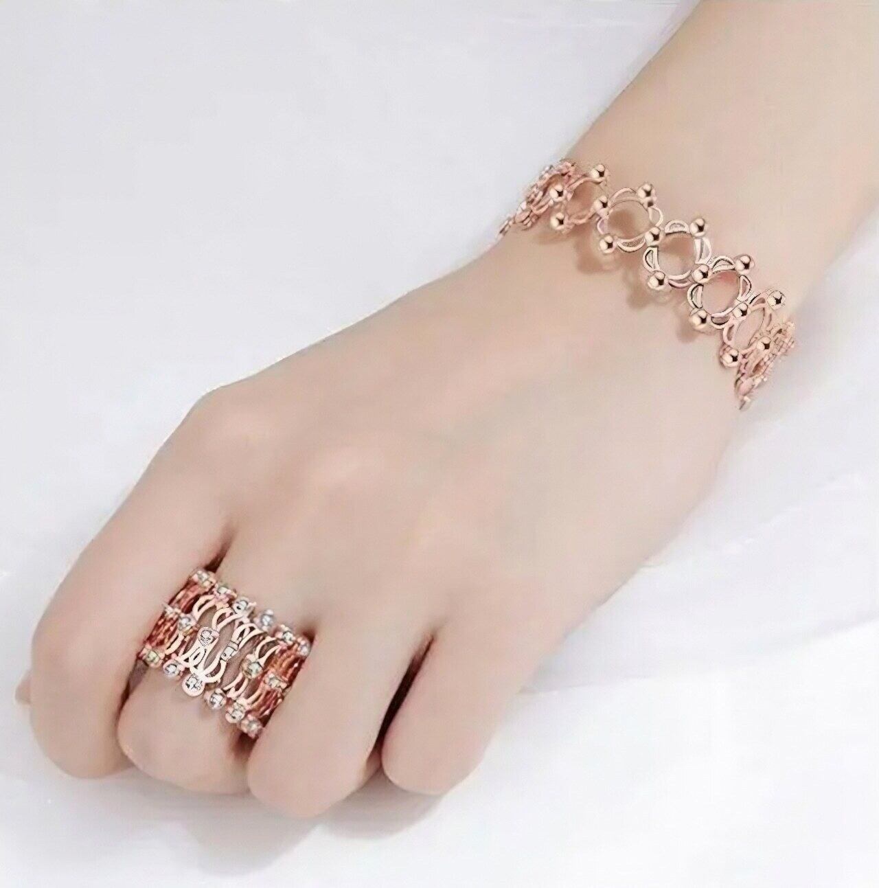 伸縮式のリング・ブレスレットで、1つで2通りの着け方ができますカップルや親友への誕生日プレゼント、記念日のギフト銅メッキシルバーリング