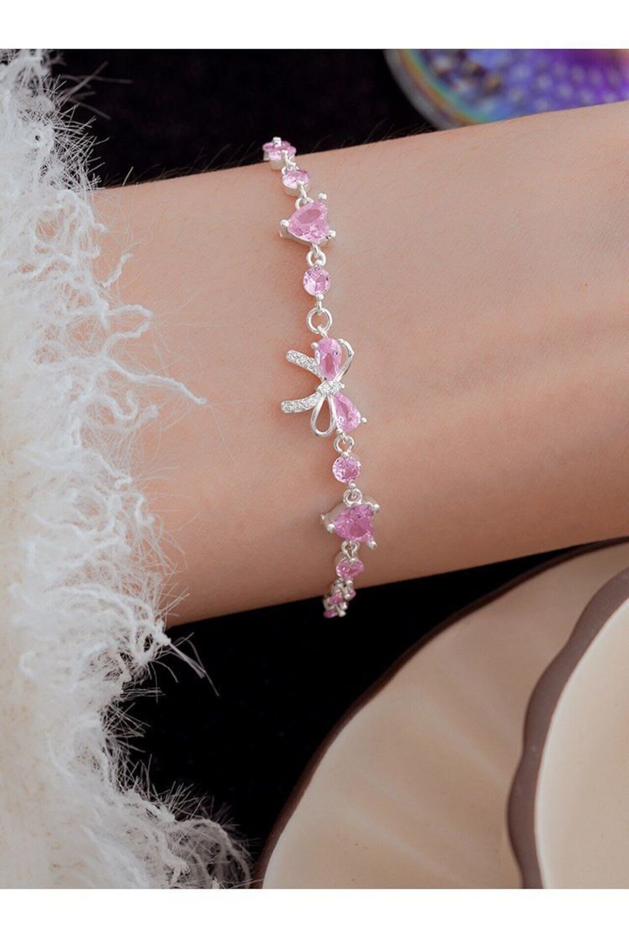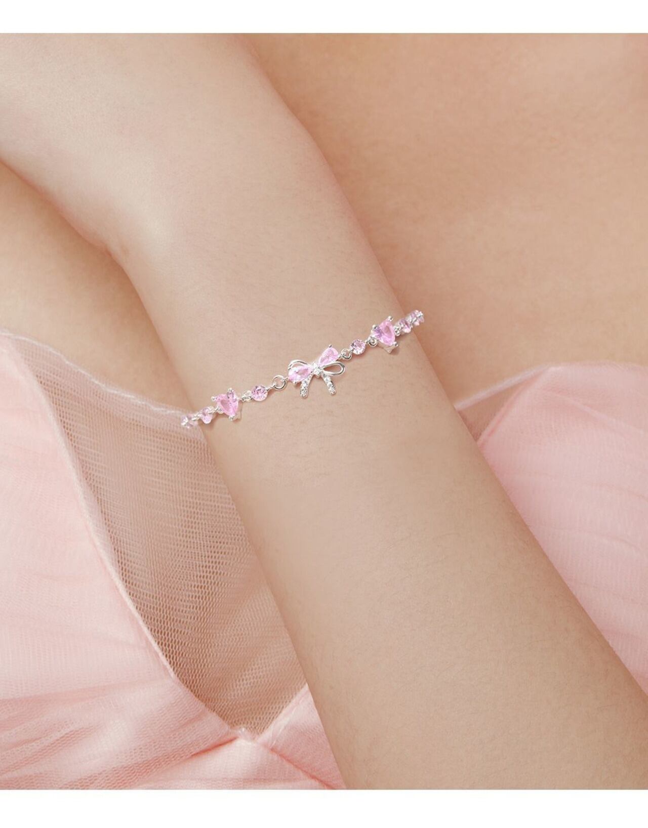 ピンク ダイヤリボン ブレスレット