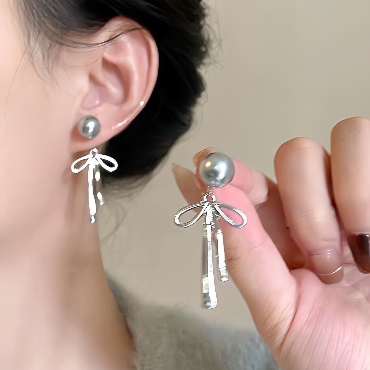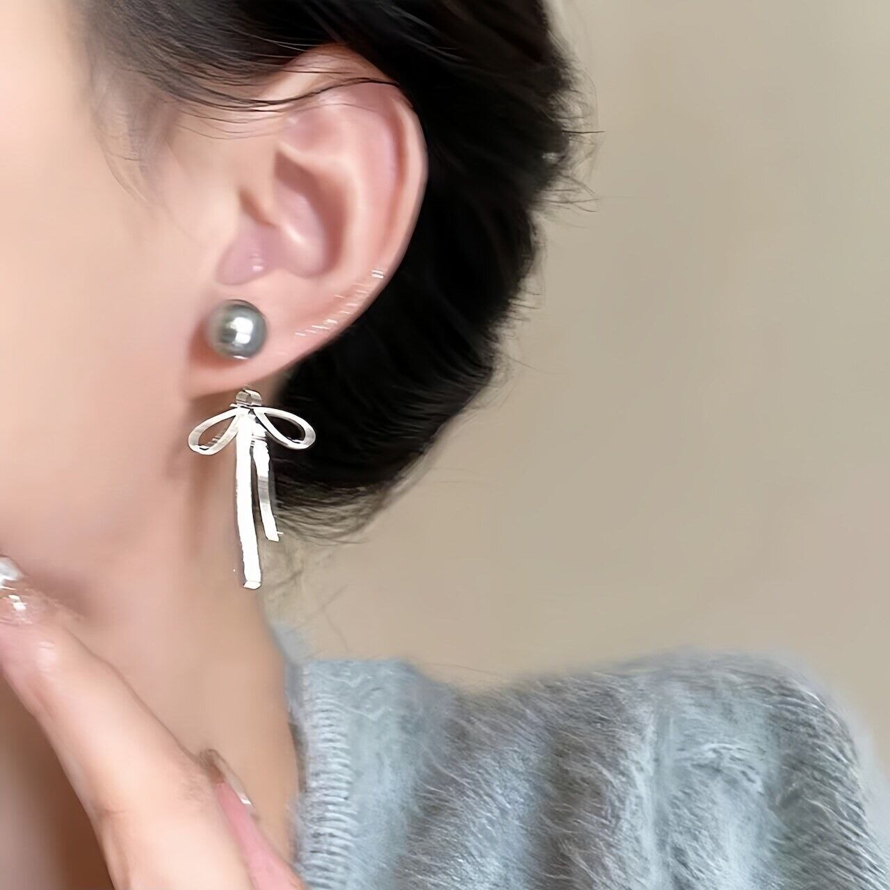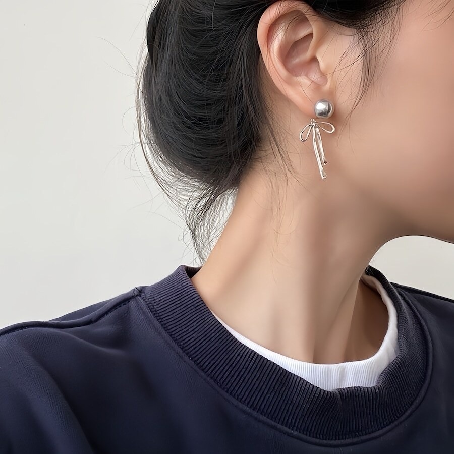 【上品な艶めき】大粒パールと華奢リボンの揺れるピアス|大人可愛いを演出する上品アクセサリー✨普段使いにも特別な日にもぴったり