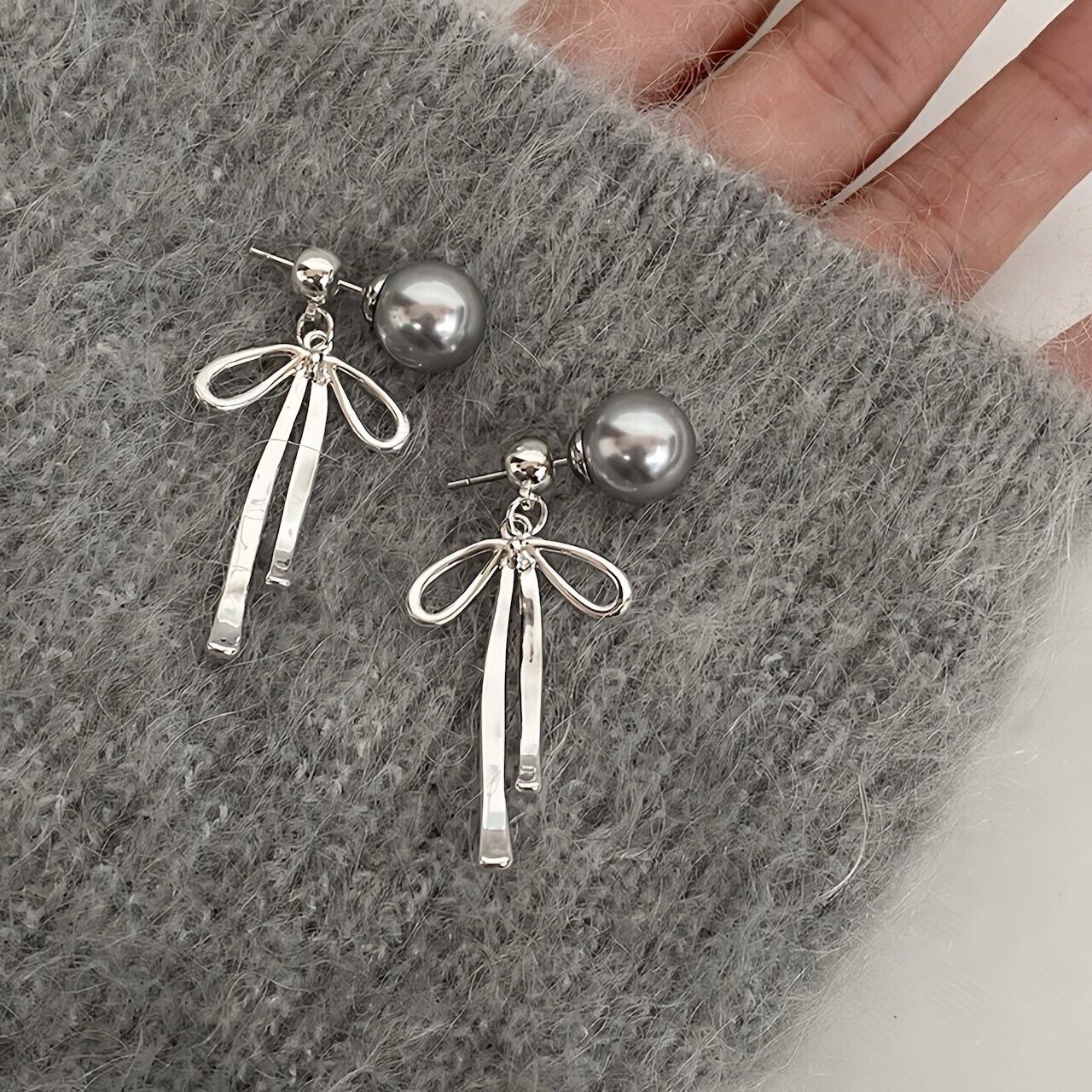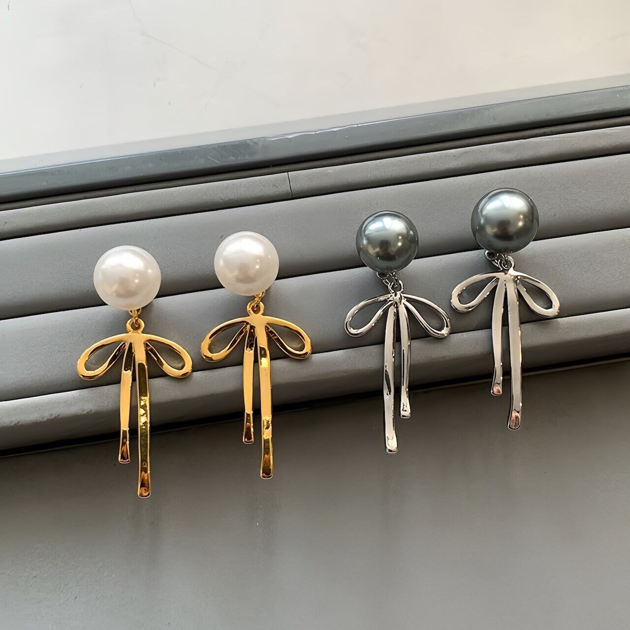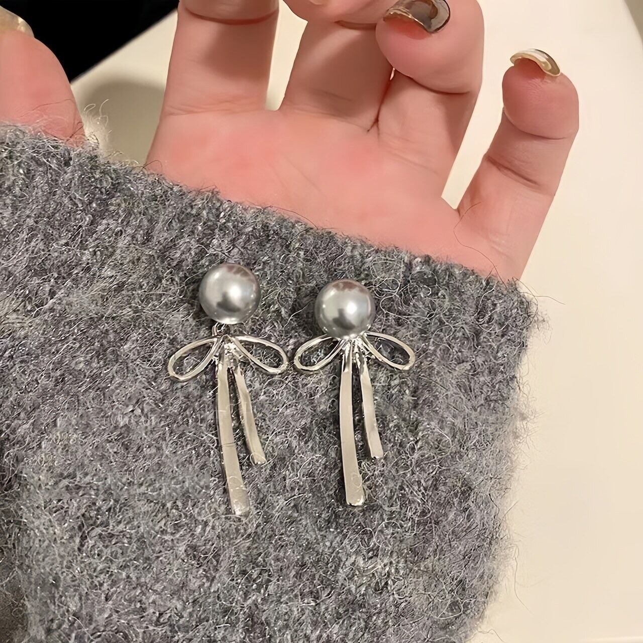 【上品な艶めき】大粒パールと華奢リボンの揺れるピアス|大人可愛いを演出する上品アクセサリー✨普段使いにも特別な日にもぴったり