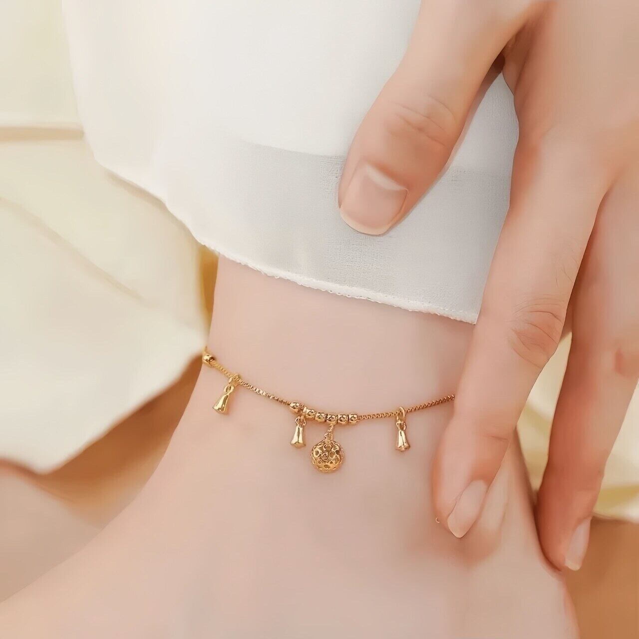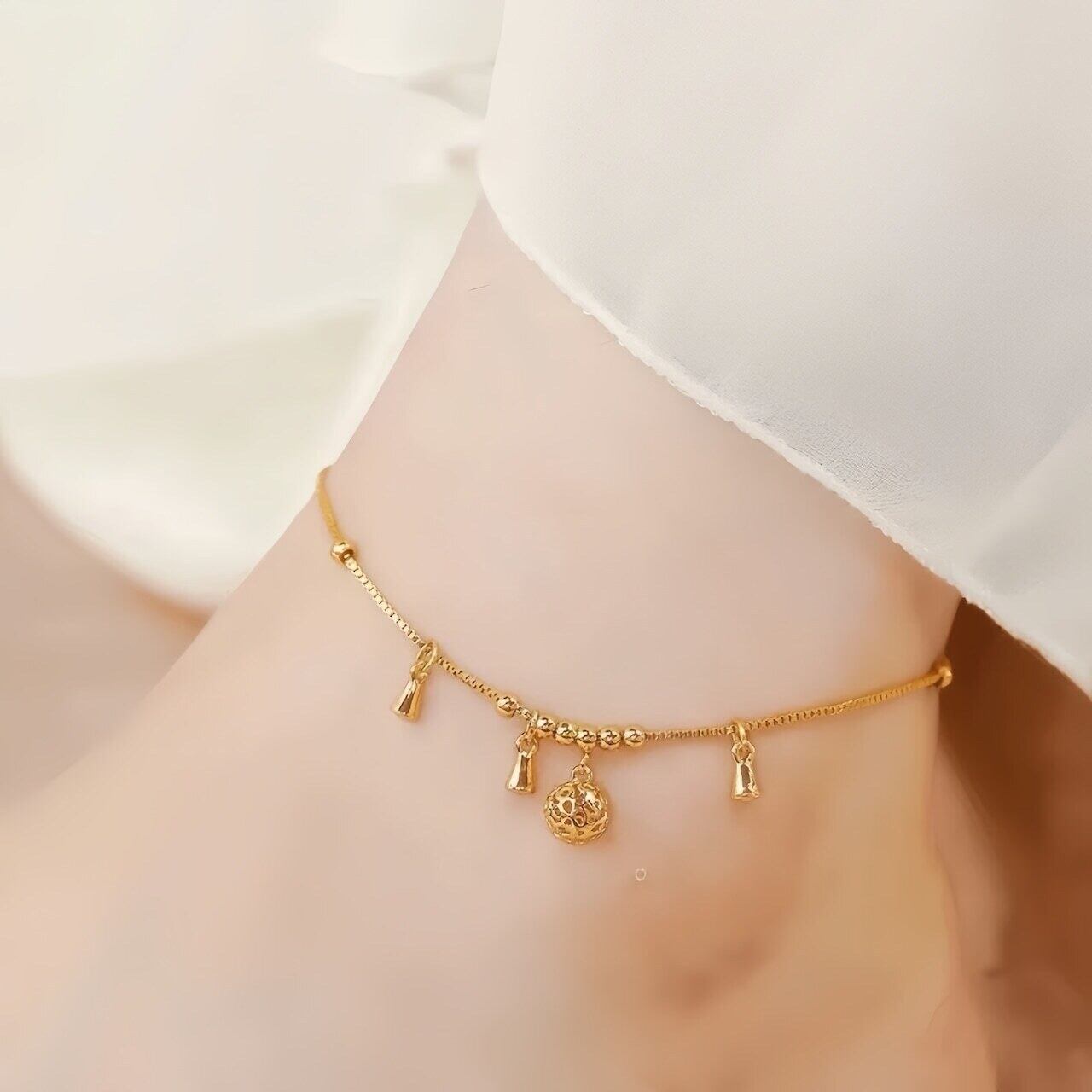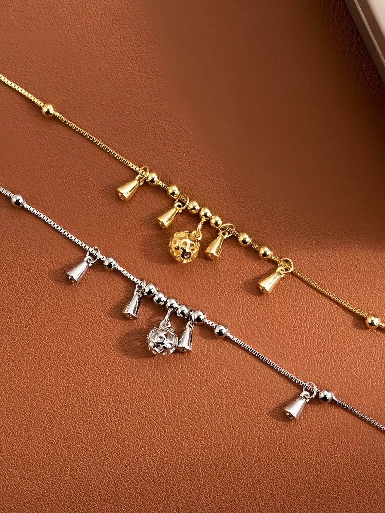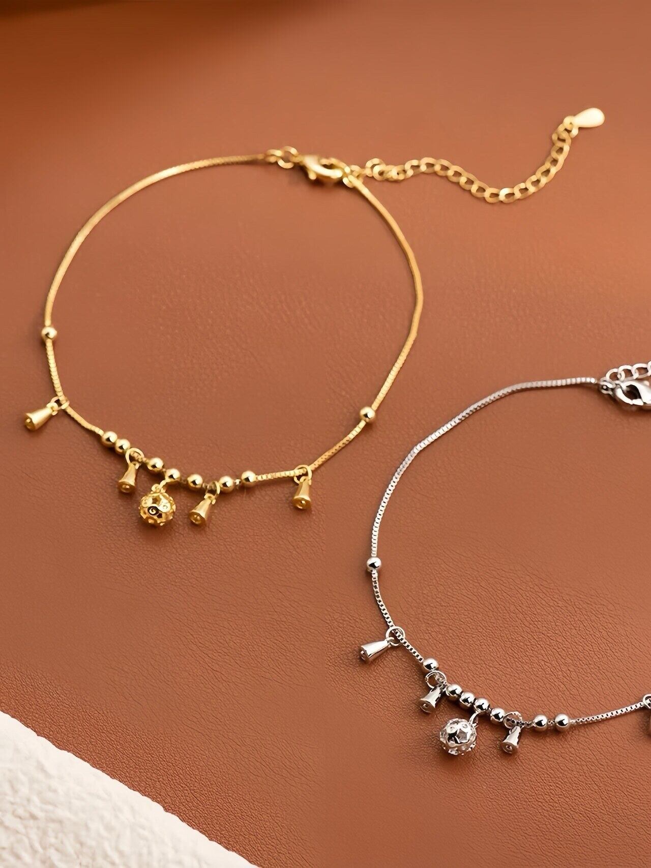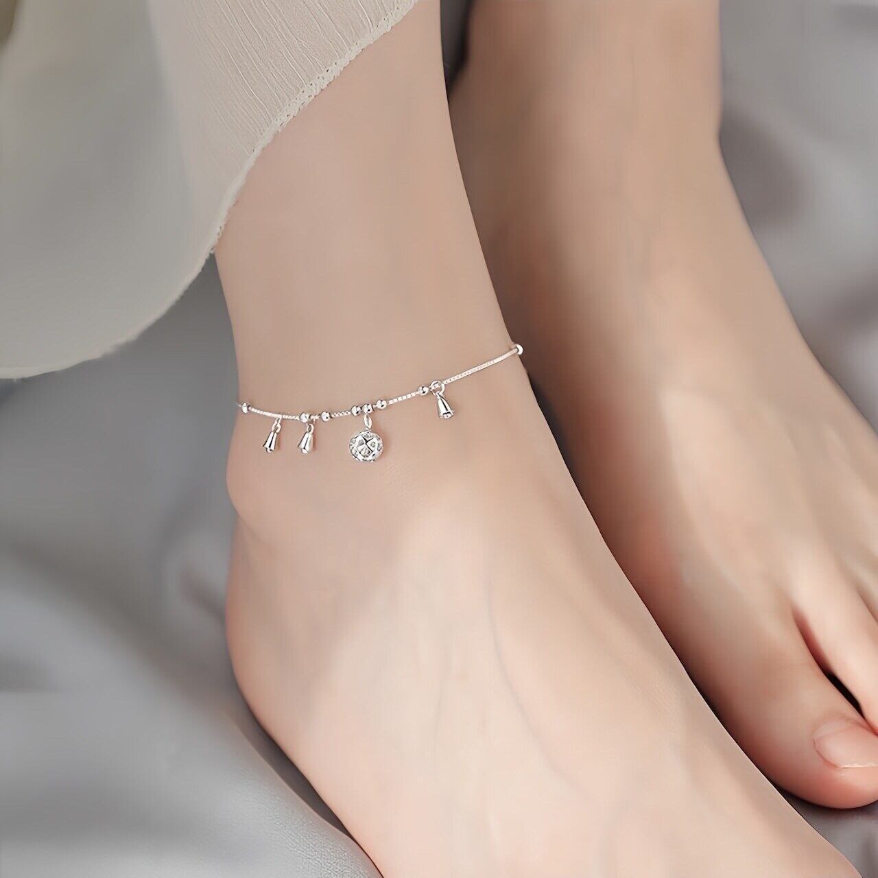 選べるシルバー&ゴールド✨華奢で揺れるチャームアンクレット|足元にきらめきを