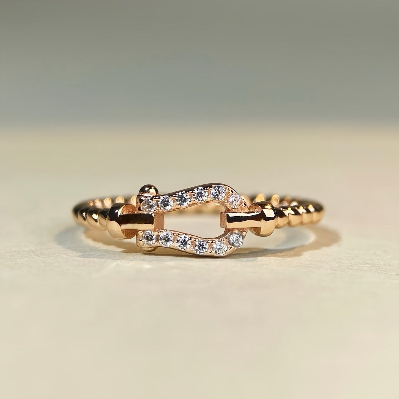 上品なバックルデザインが特徴のリングは、洗練された存在感で毎日のコーディネートに華やかさをプラス。シンプルながらも個性的で、大人の女性にぴったりな万能アイテムです。