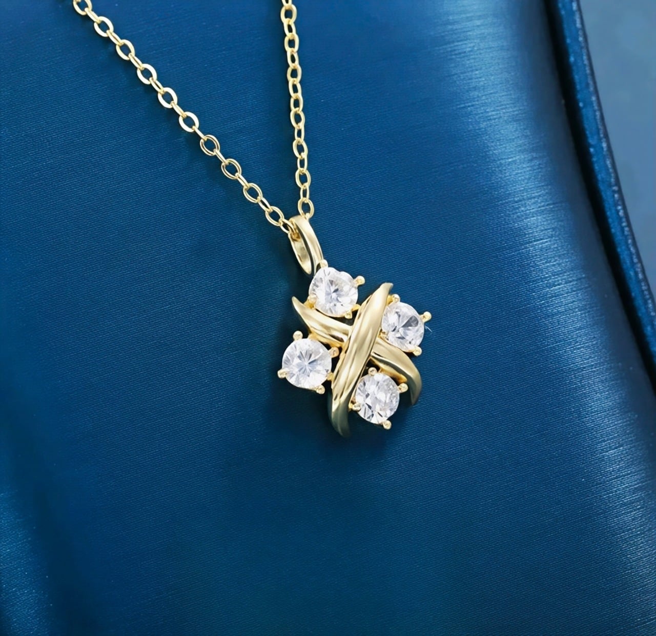 S925 交差モイサナイトネックレス彼女や親友への誕生日プレゼント、記念日ギフト