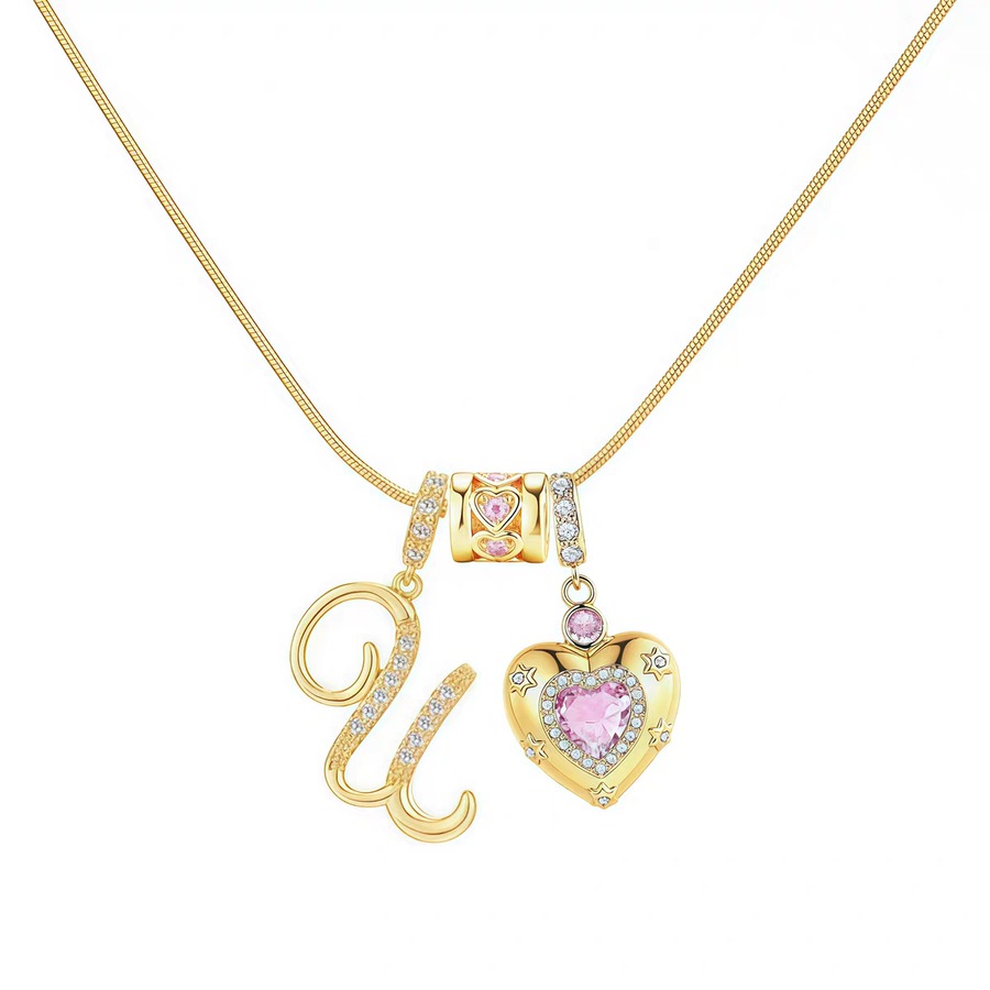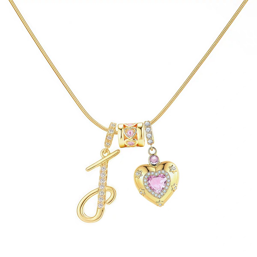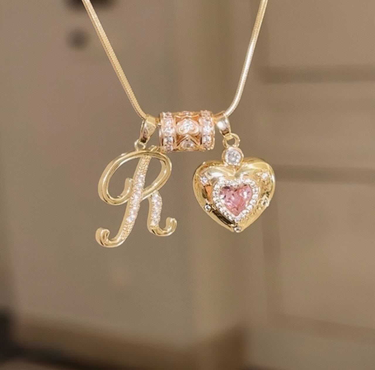 【A~Z選べる】パーソナル イニシャル × ピンクハート ネックレス|想いを込めた一文字が胸元でやさしく輝く
