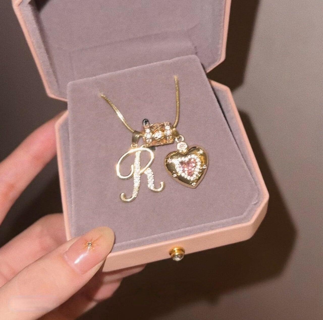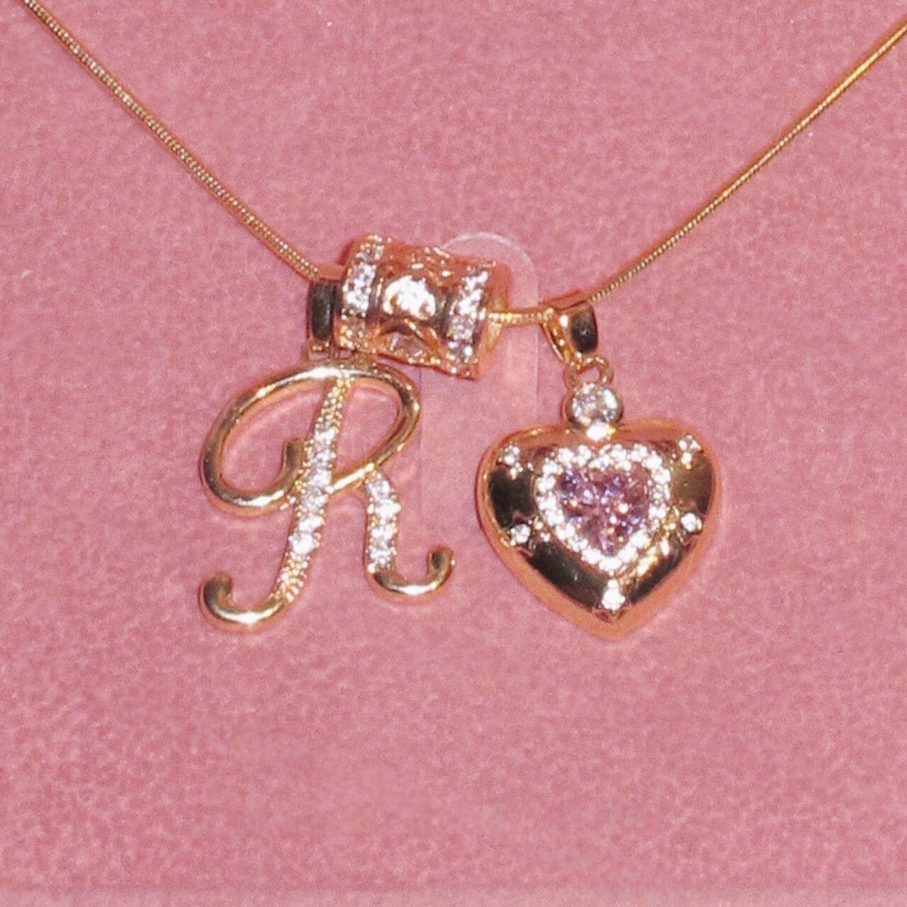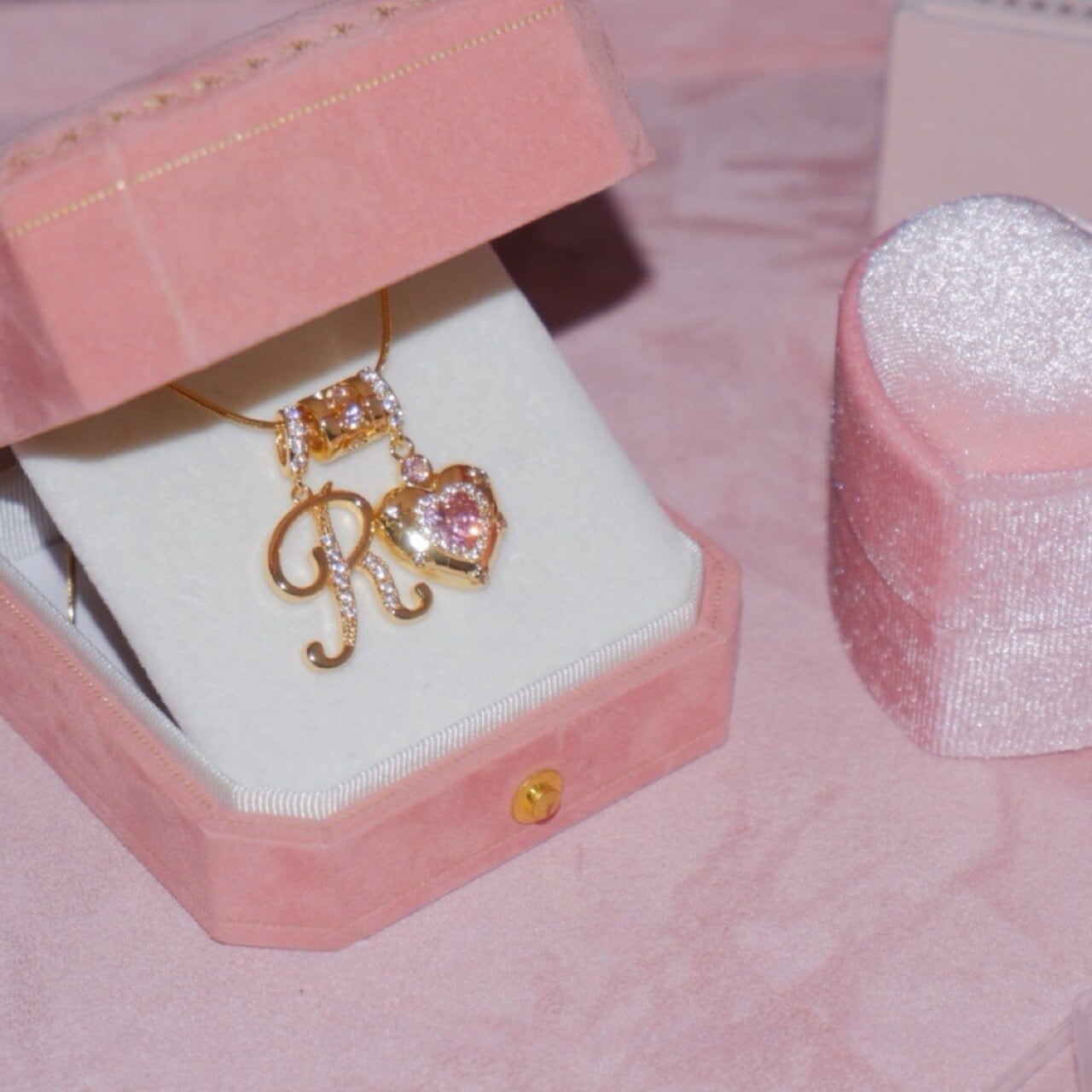 【A~Z選べる】パーソナル イニシャル × ピンクハート ネックレス|想いを込めた一文字が胸元でやさしく輝く