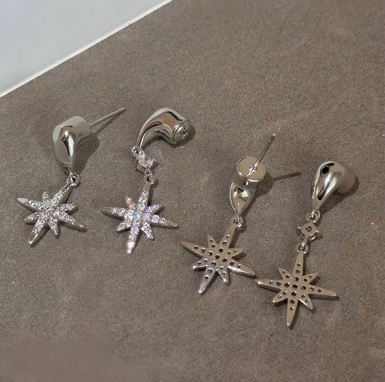【人気定番】925シルバー針 スター ダブルドロップピアス|繊細な輝きで耳元に上品なアクセント