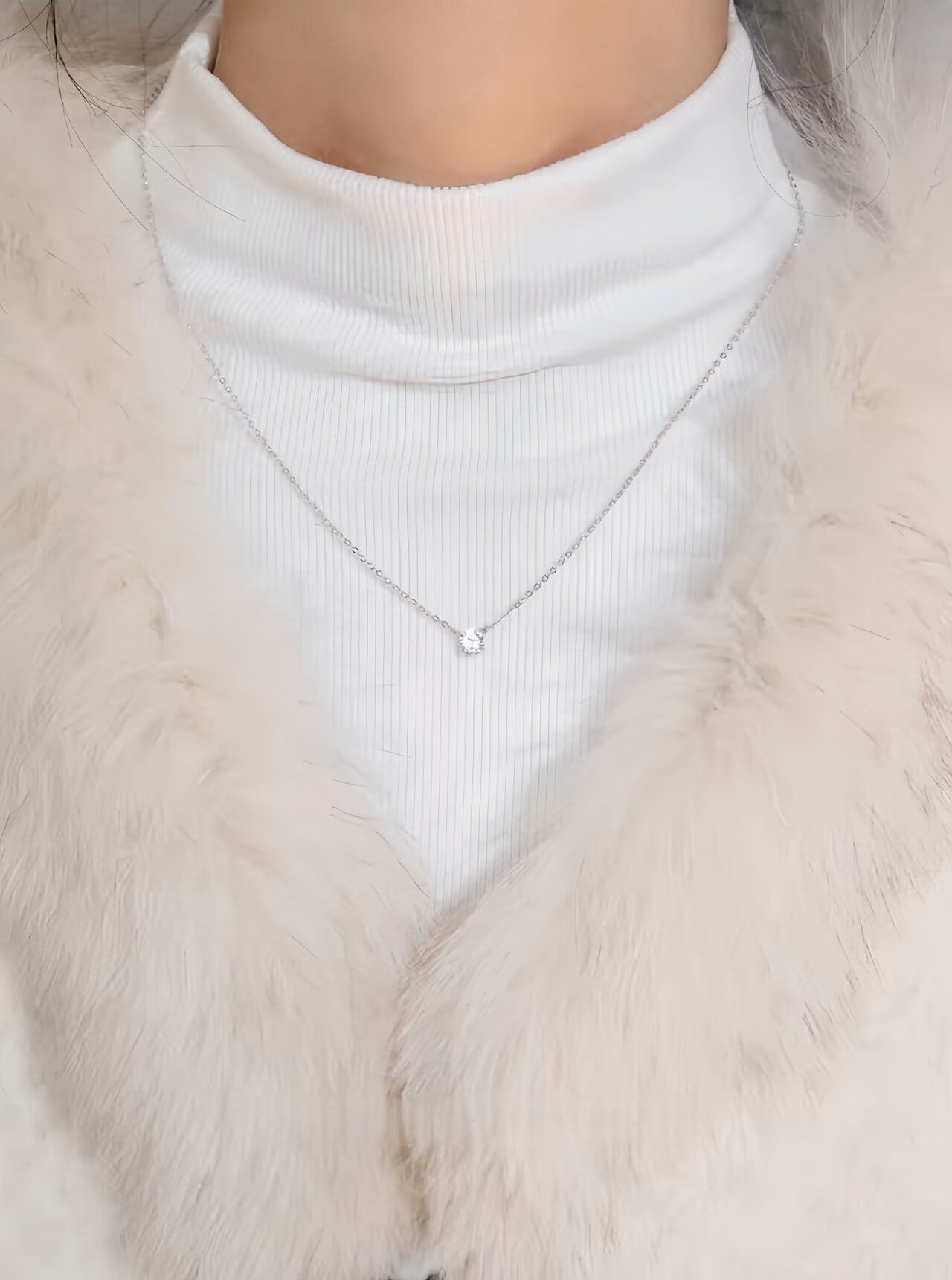 925シルバー 一粒ダイヤ ネックレス|華奢チェーン・鎖骨見せ・デイリー対応