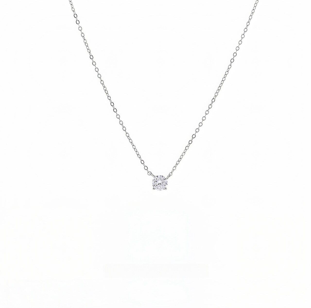 華奢な925シルバーチェーンに、クリアカットの一粒ダイヤをあしらったシンプルデザイン。