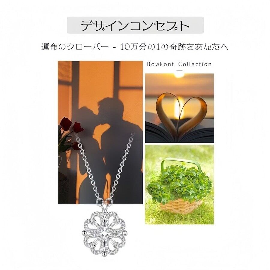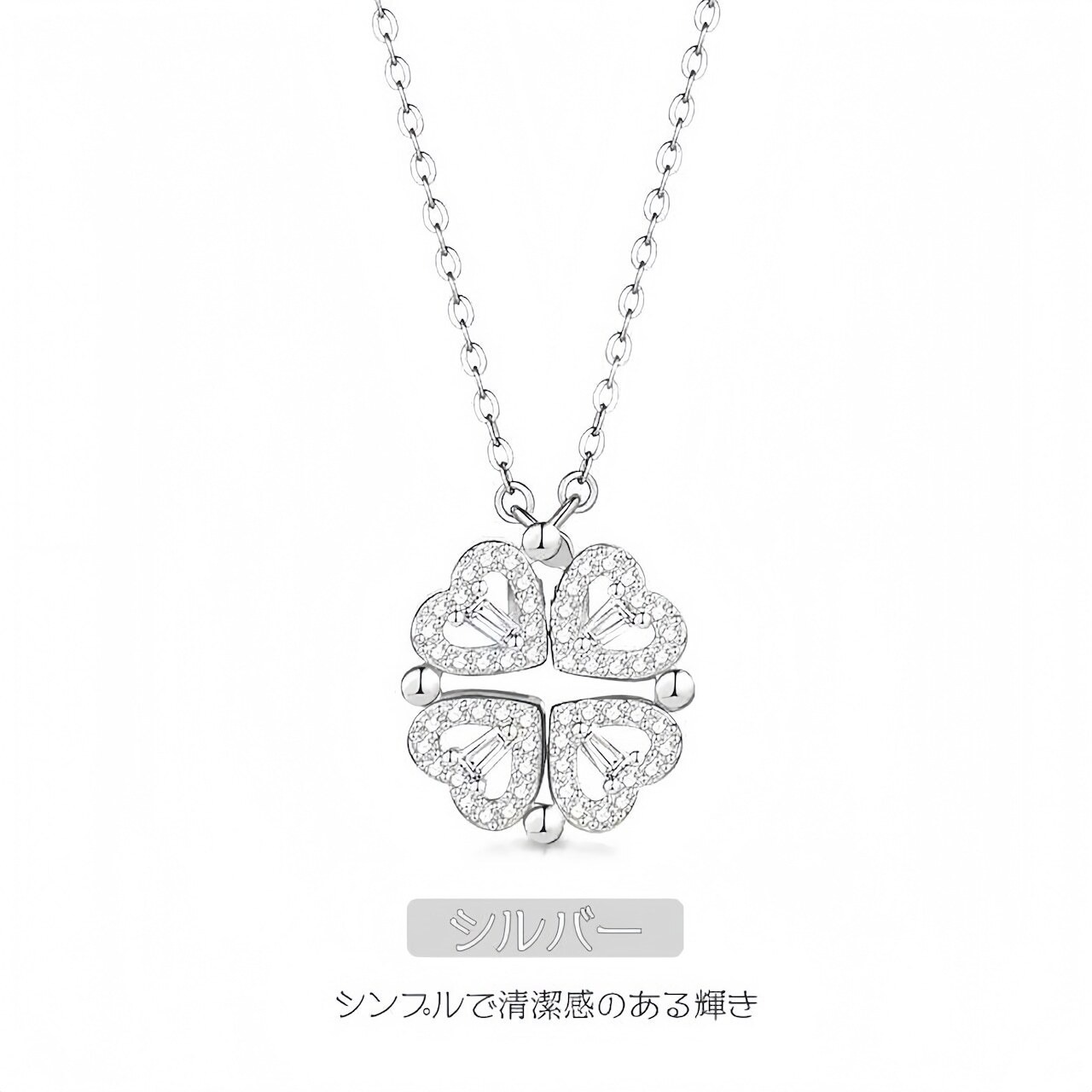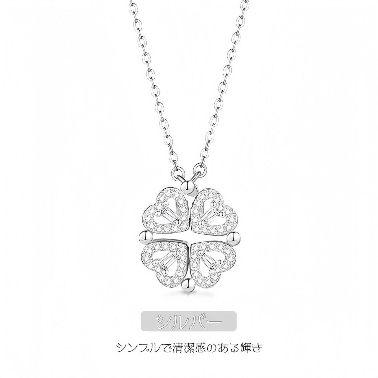 【2WAY】S925 シルバー ハート&クローバー ネックレス|シンプル 上品