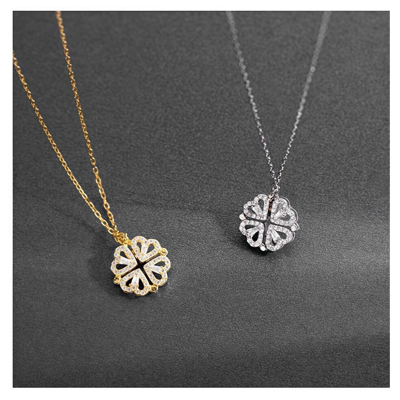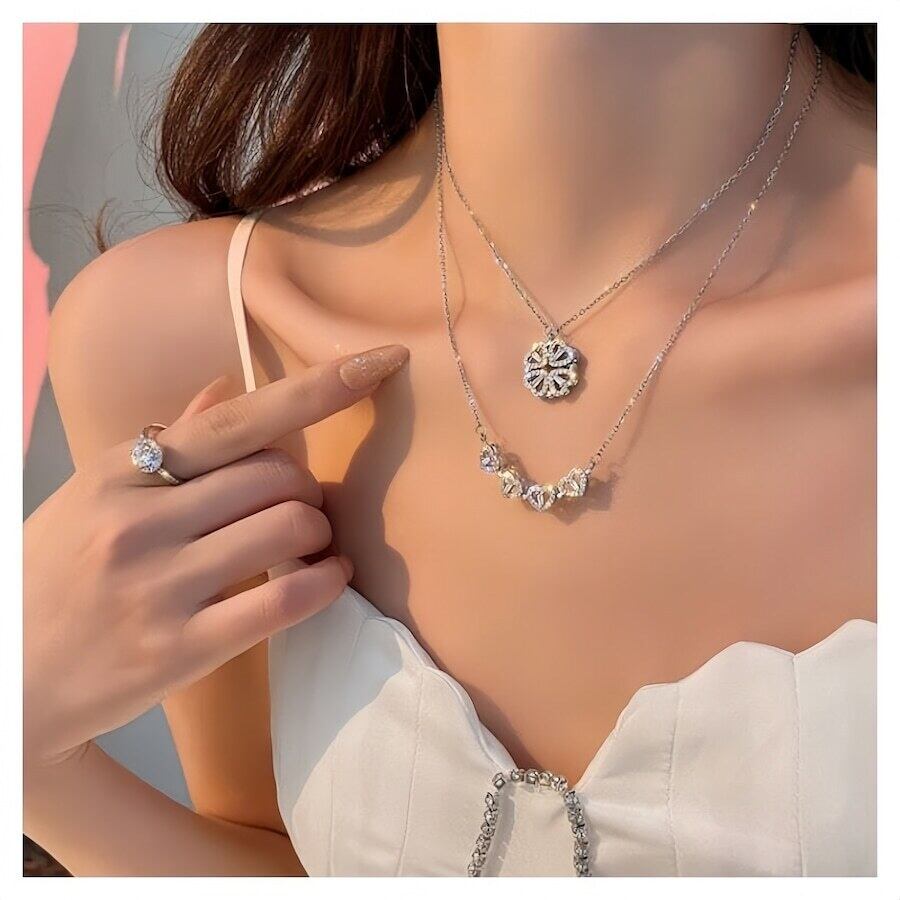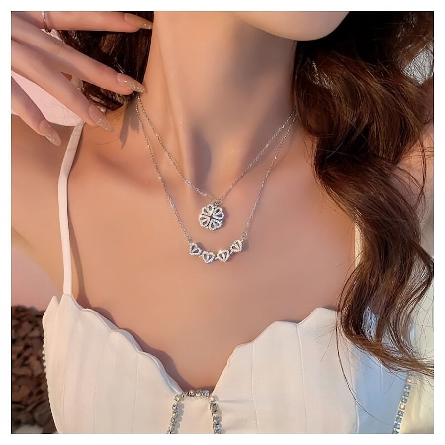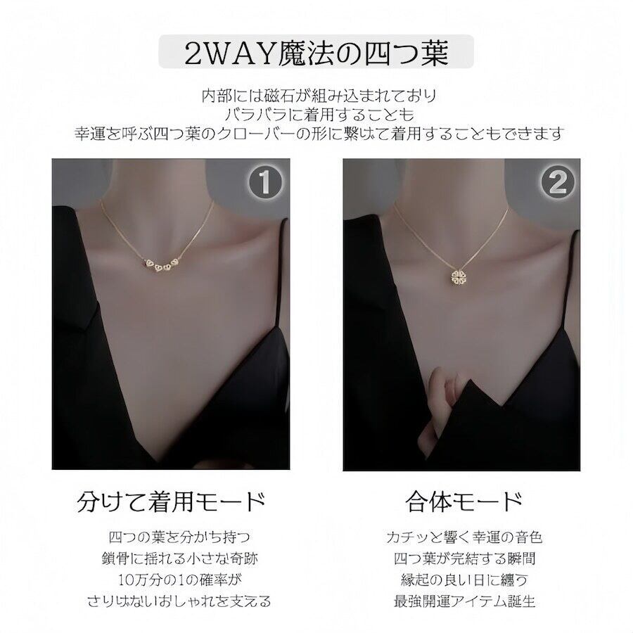 【2WAY】S925 シルバー ハート&クローバー ネックレス|シンプル 上品