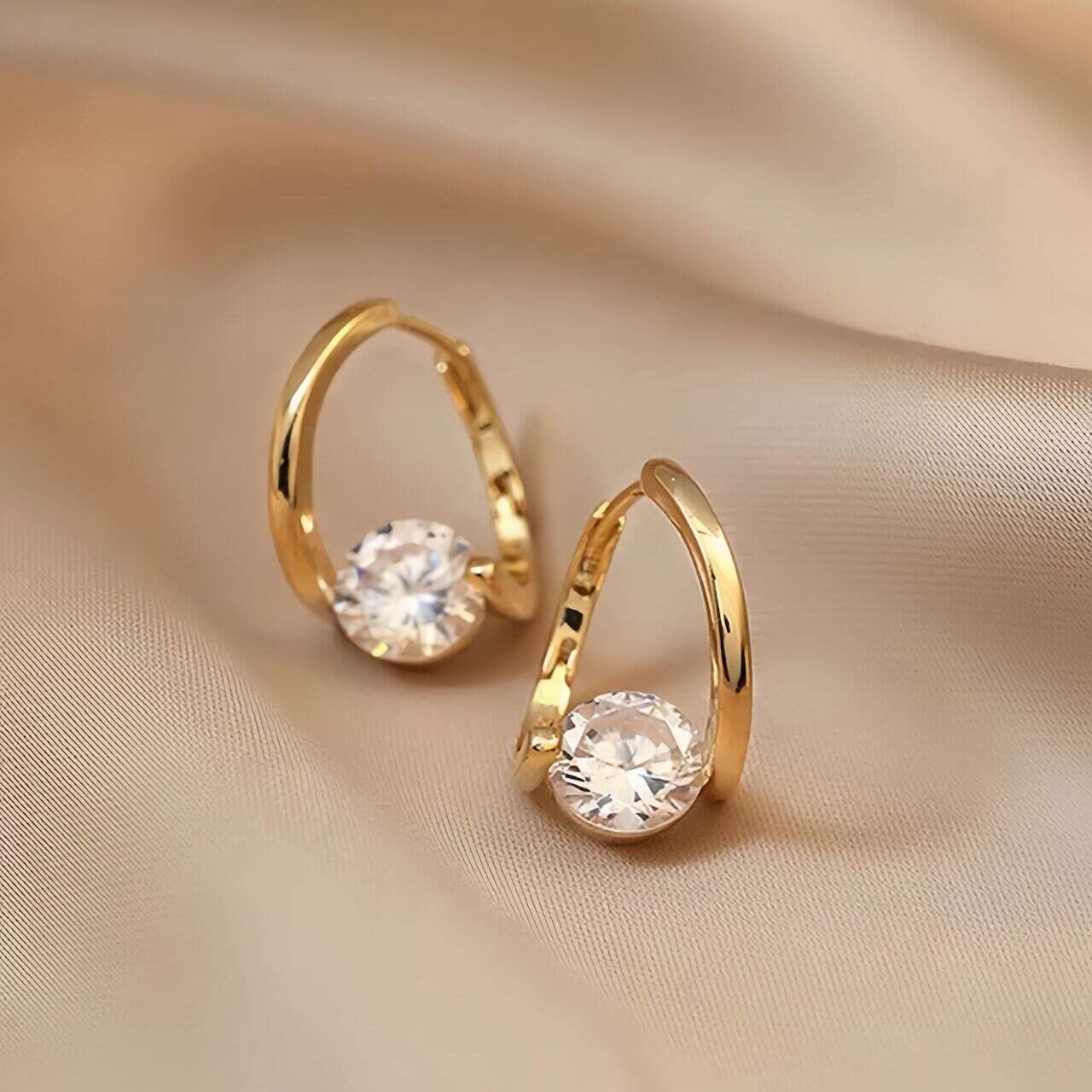 【S925純銀ポスト】キラめくクリスタル しずくフープピアス(中折れ)|上品 大人シンプル