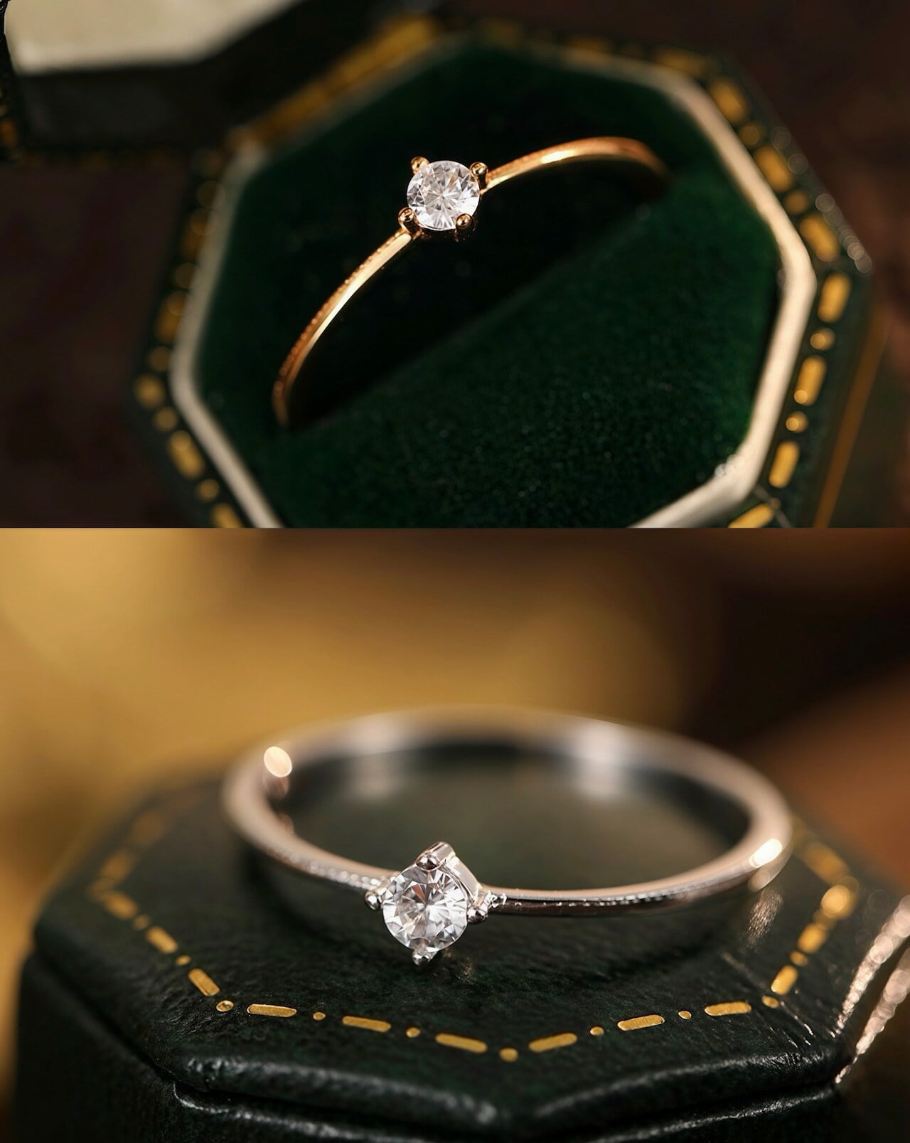 925シルバー素材を使用した、極細デザインの一粒ストーンリング。