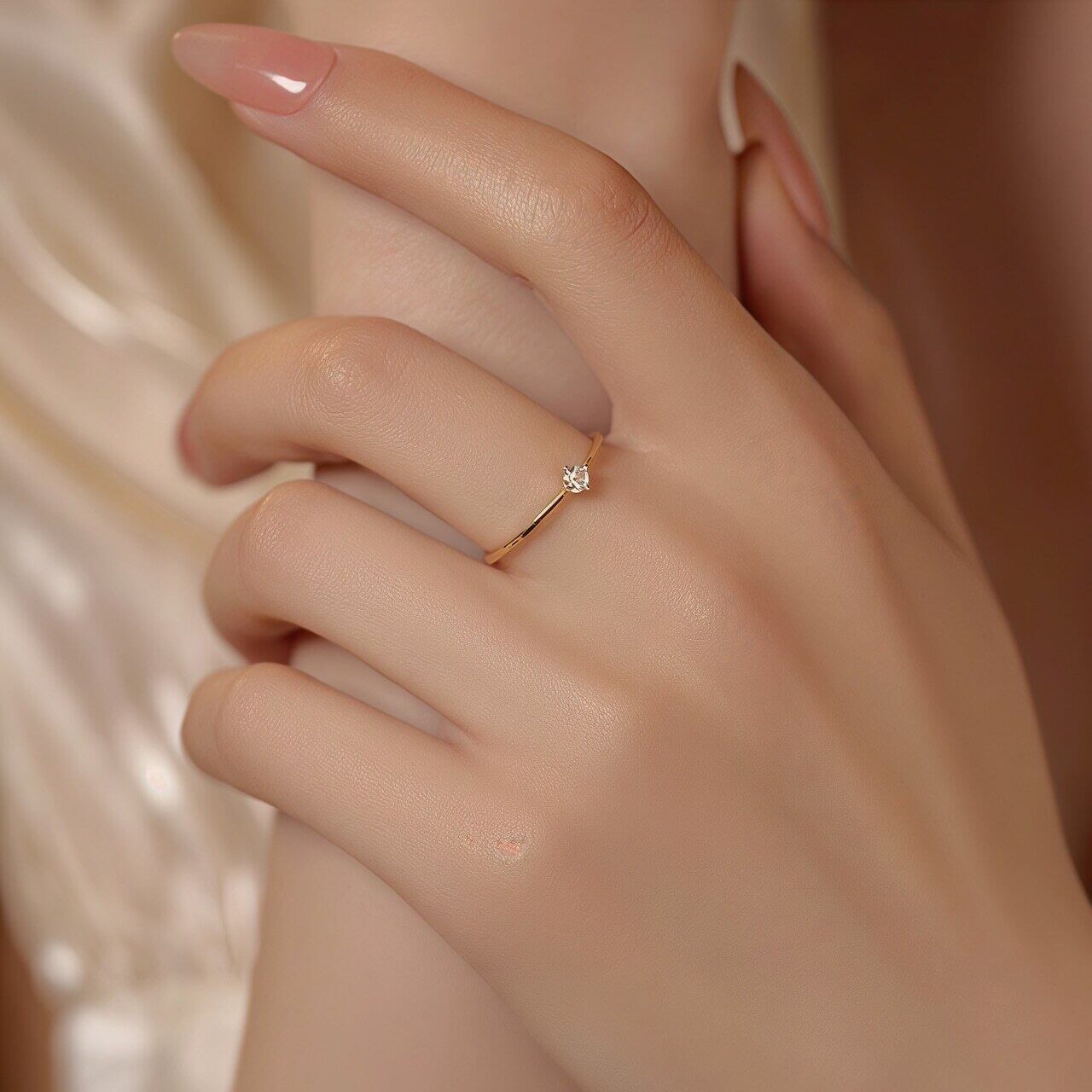 925シルバー 極細リング 一粒ストーン シンプル 上品 デイリー使い 肌に優しい 指輪