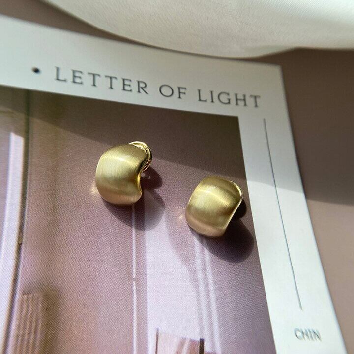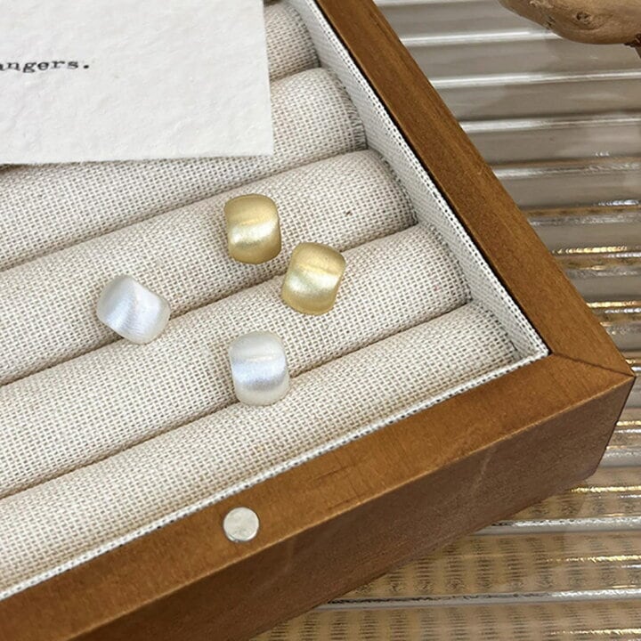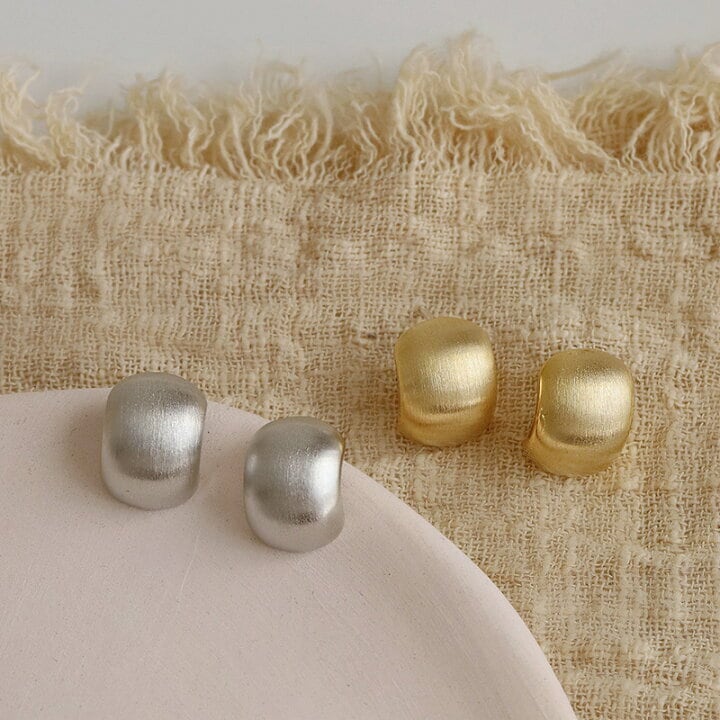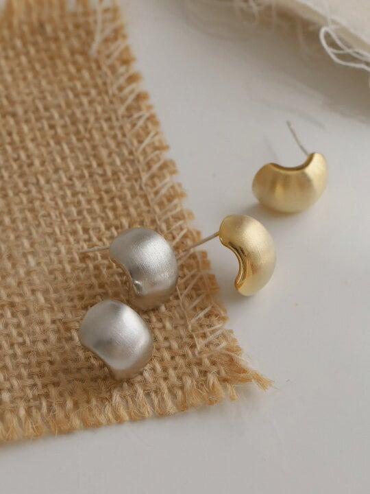 マットメタル ビーンズデザイン イヤリング/ピアス 小ぶり シンプル レディース (ゴールド・シルバー/ノンホール対応)