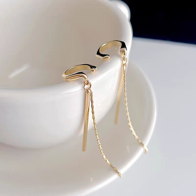 穴いらずで小顔見え。揺れる大人イヤーカフ