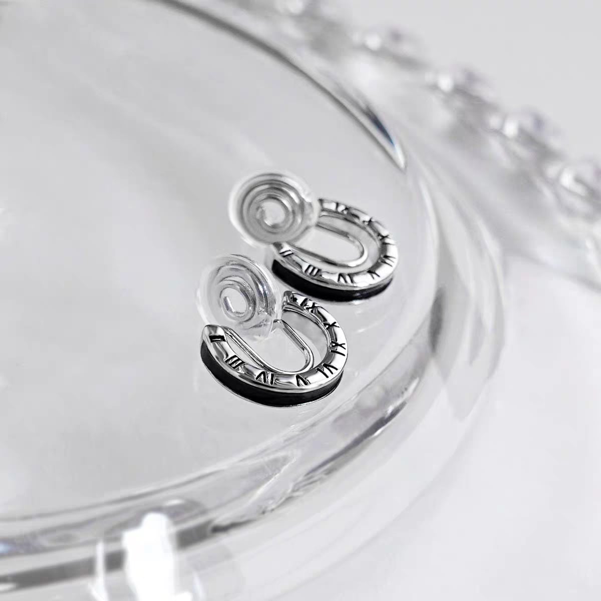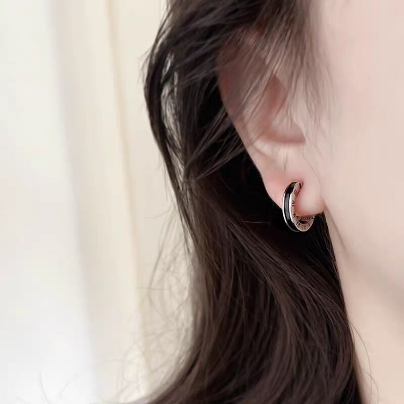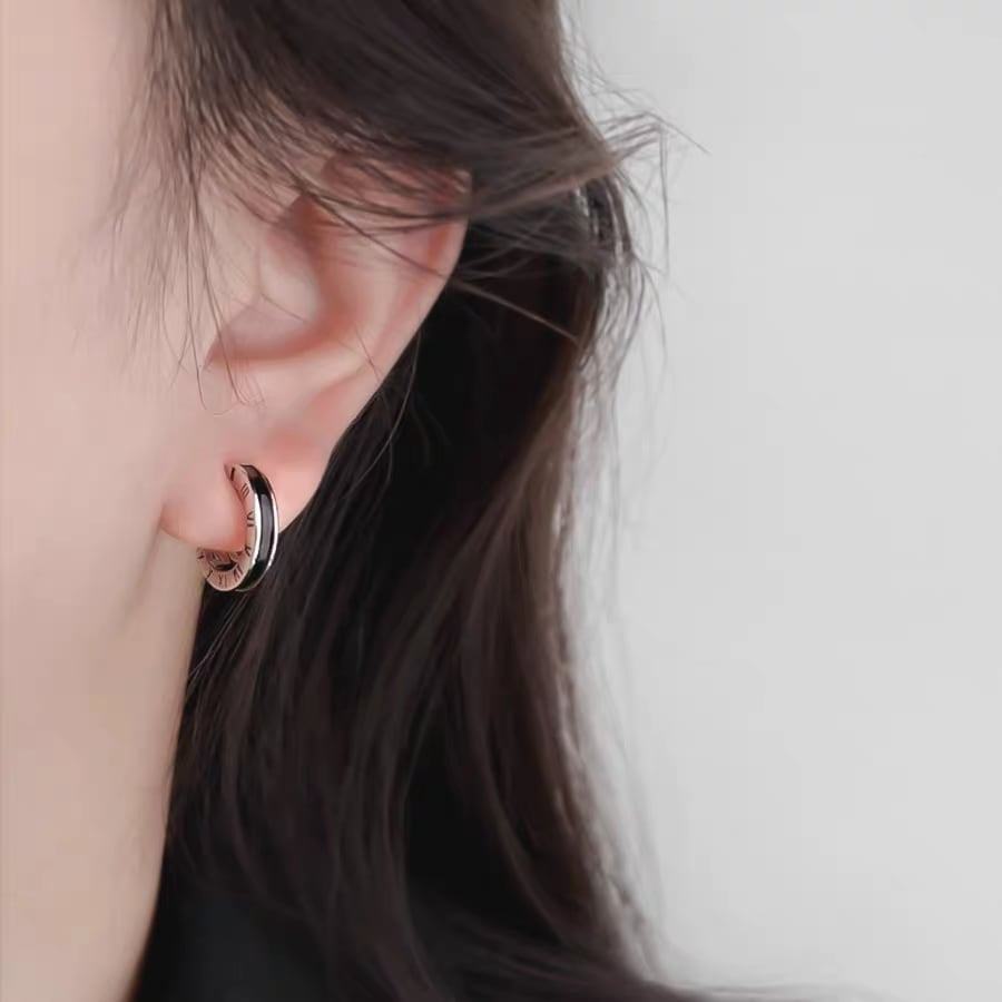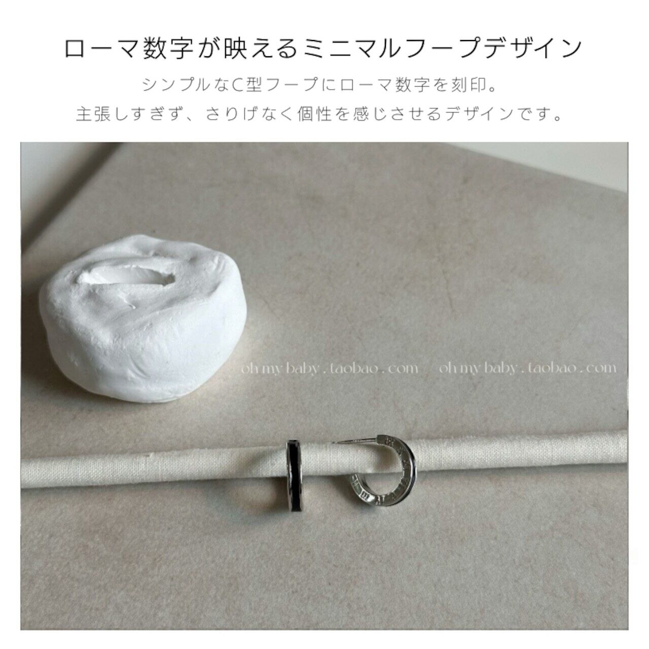 韓国 フープピアス 小さめ 14mm メンズ レディース イヤーカフ ローマ数字 シルバー ブラック ユニセックス