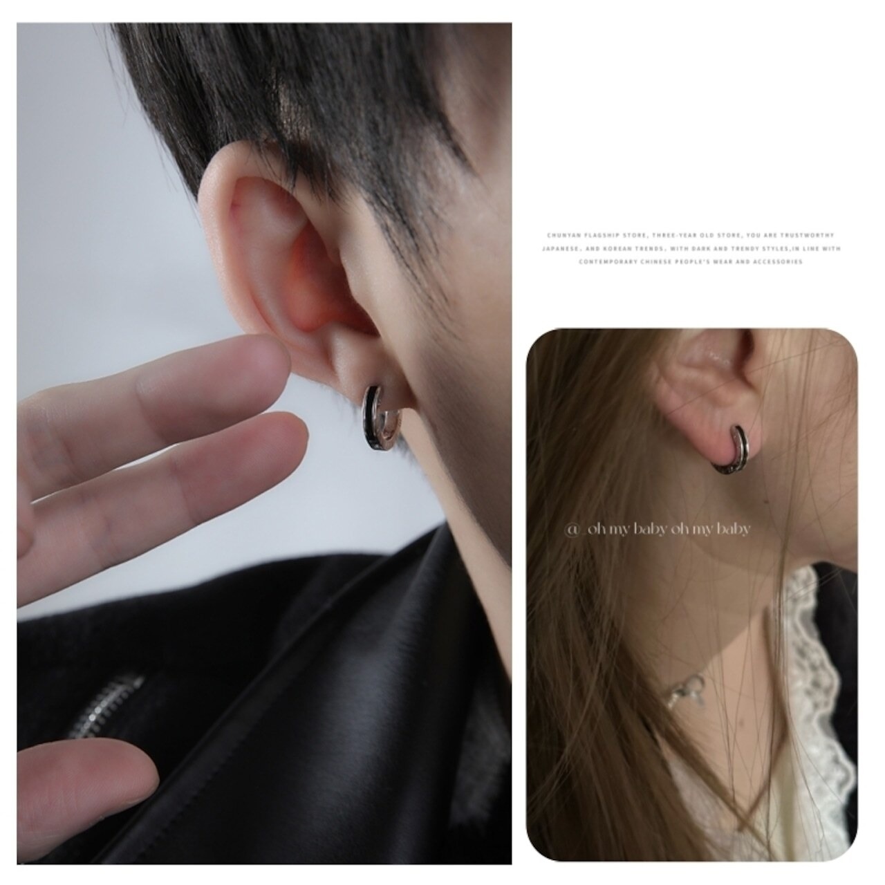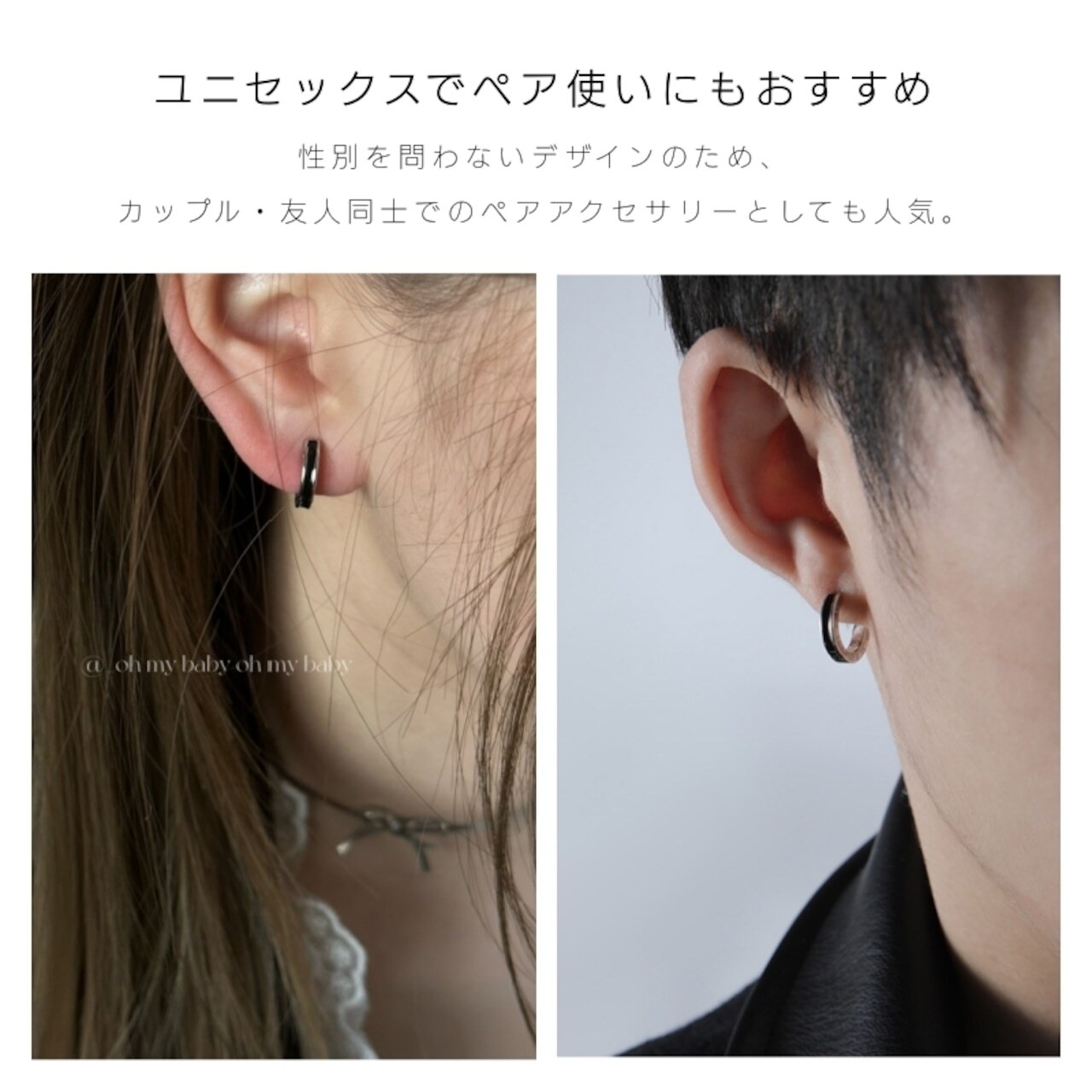 韓国風|ブラックライン|ユニセックス|両耳セット