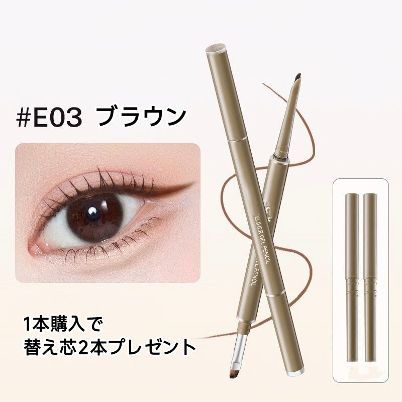 替え芯付き 二頭アイライナージェルペンシル 刀型ブラシ付き 防水 防汗 にじみにくい ウォータープルーフ 極細 描きやすい