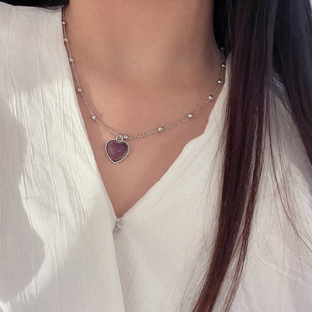 体温で色が変わるハートネックレス サーモ変色 S925シルバー レディース